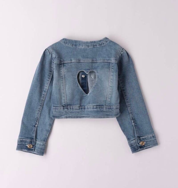 Giubbino jeans IDo con parte dietro con cuore forato. Da 3 a 8 anni