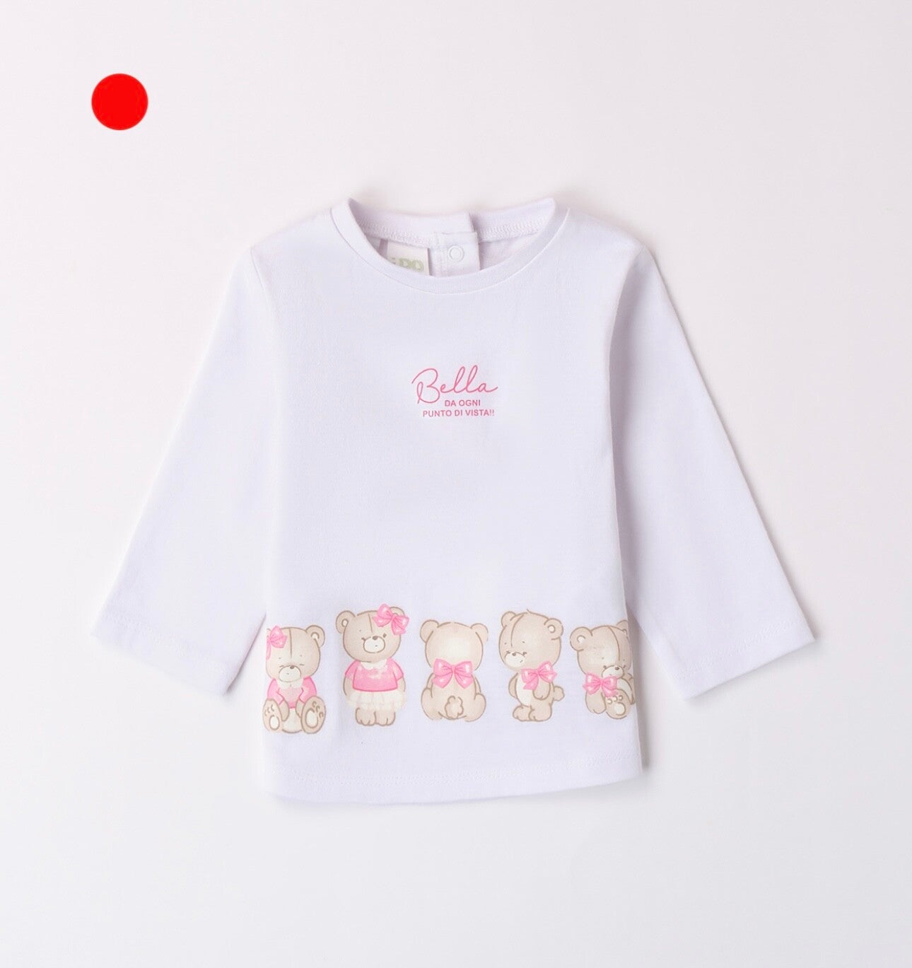 Maglia manica lunga IDo in puro cotone. Base bianca con scritta "Bella da ogni punto di vista". Da 3 a 18 mesi
