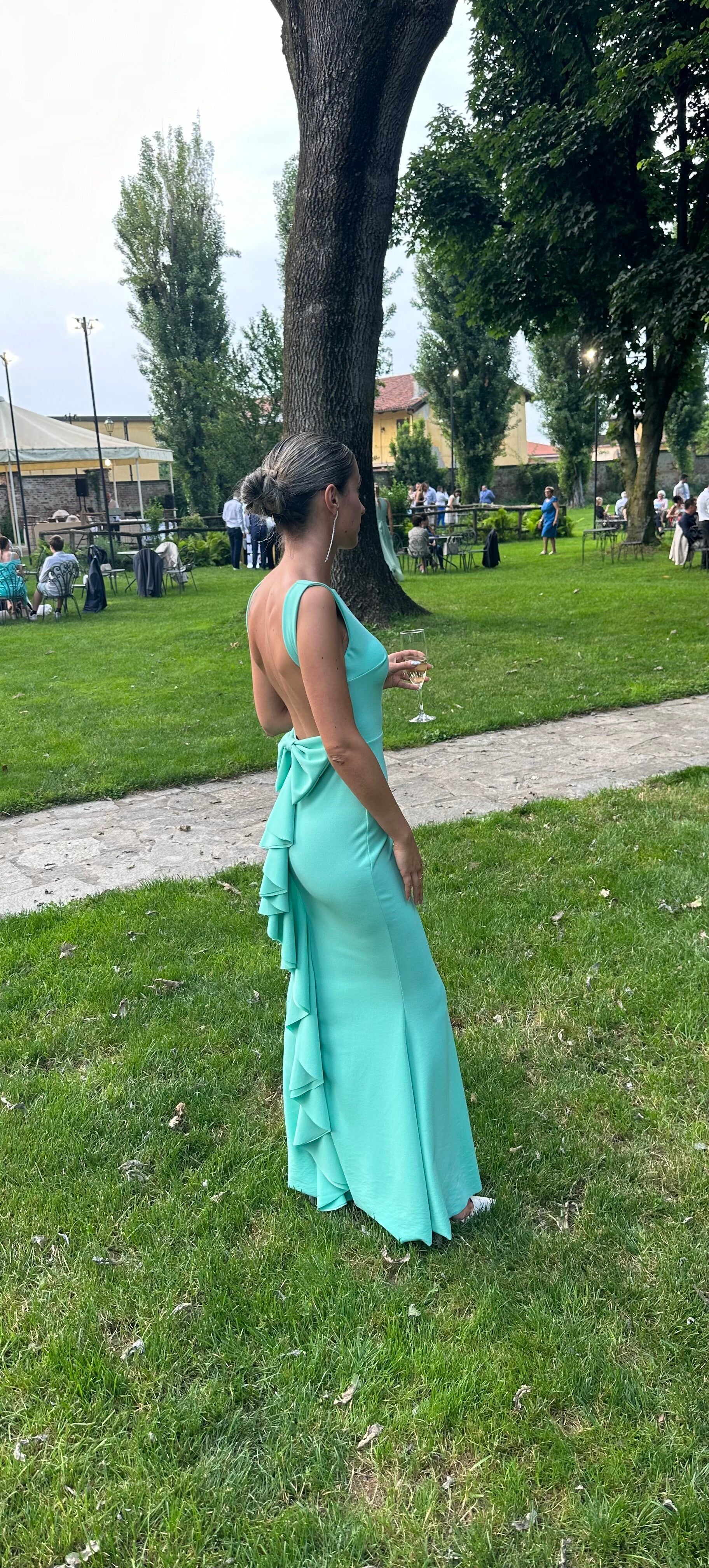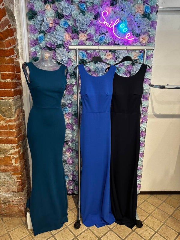 Abito modello stretto a sirena con schiena nuda e fiocco dietro, taglia unica slim, disponibile in diversi colori (altre varianti colore riassortibili al n 3477889200 )