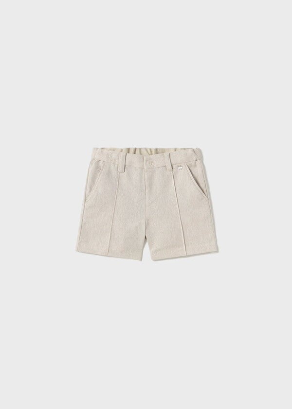Bermuda in tessuto Mayoral beige chiaro con bottone e coulisse in vita da stringere. Da 6 a 36 mesi