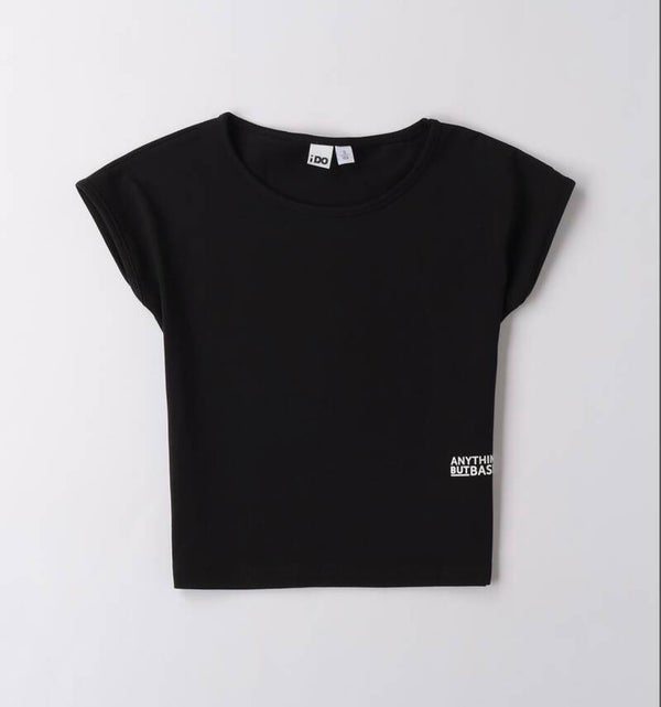 T shirt cotone IDo disponibile in nero o verde salvia. Da 8 a 16 anni