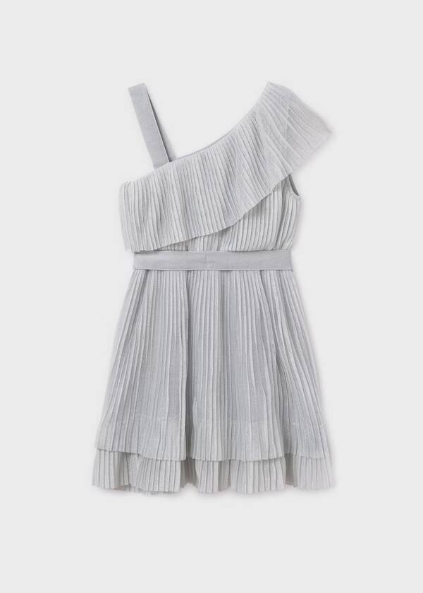 Abito Mayoral elegante foderato in cotone con effetto plisse lurex monospalla. Zip laterale. Da 8 a 16 anni