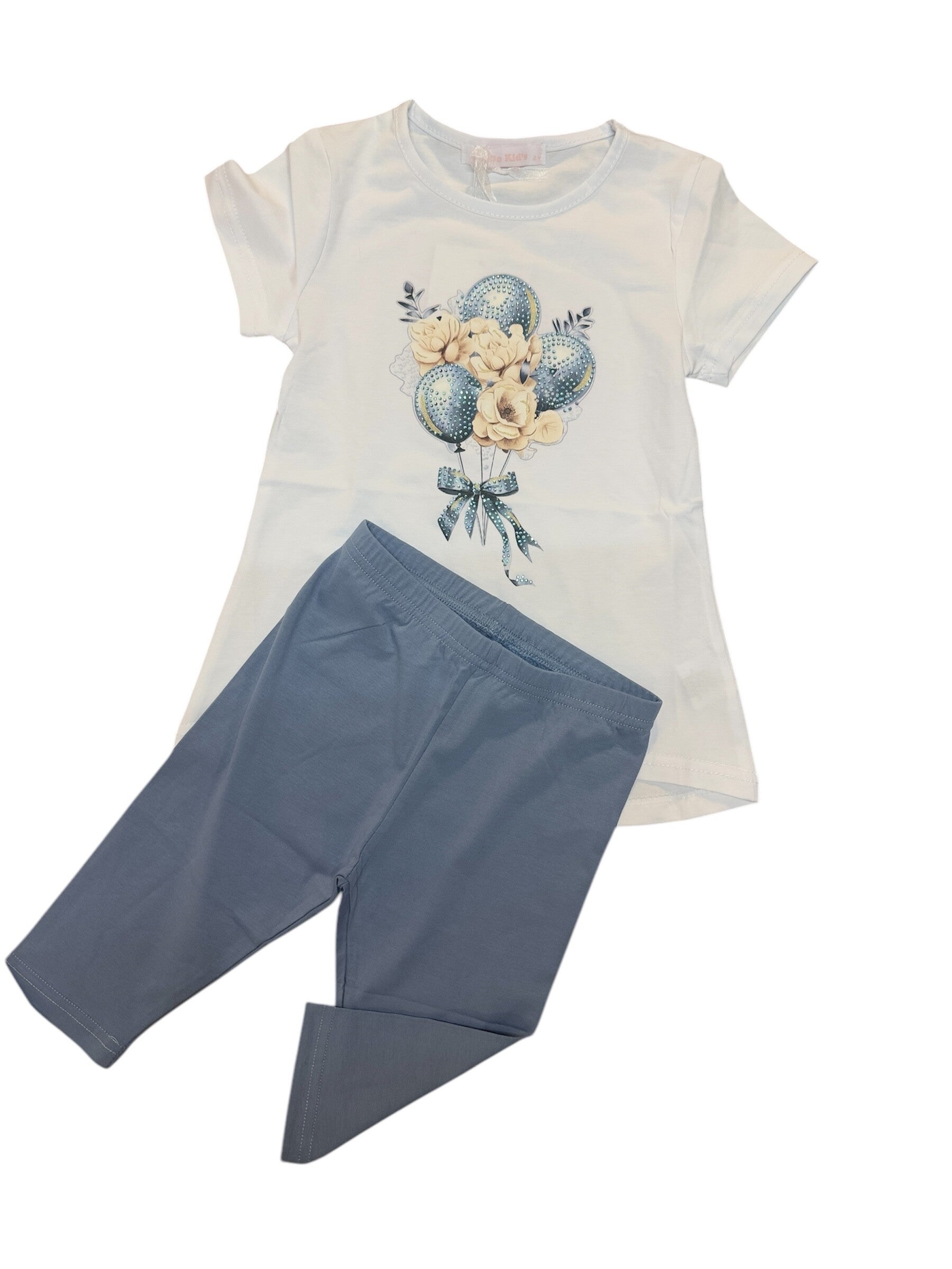 Completo in puro cotone composto da maxi t shirt e LEGGINS al ginocchio. Da 4 a 12 anni disponibile in rosa/nero o bianco/ azzurro polvere