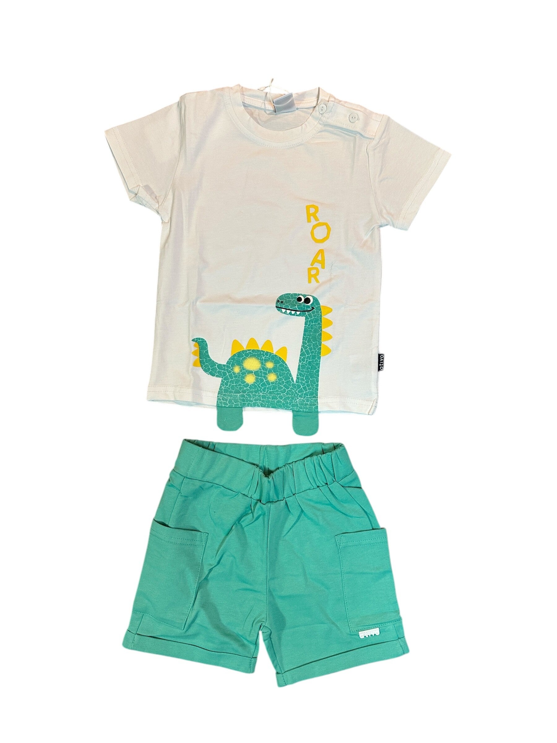 Completo cotone composto da t shirt e bermuda morbidi, disponibile in variante verde acqua o verde mela. Da 12 a 36 mesi ditta Ativo.