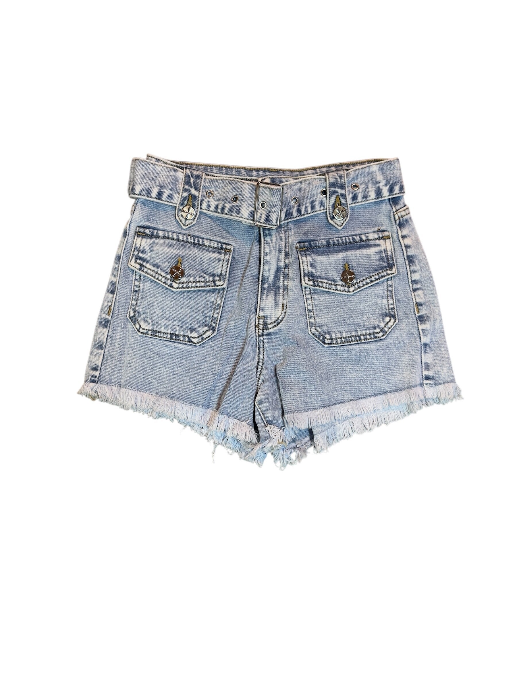 Shorts in jeans sfrangiato con cintura rimovibile, disponibile da XS a XL