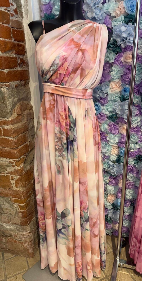 Abito monospalla strutturato con gonna e sottogonna e spacco laterale, corpetto monospalla con nido d ape. Tg unica veste da XS a L