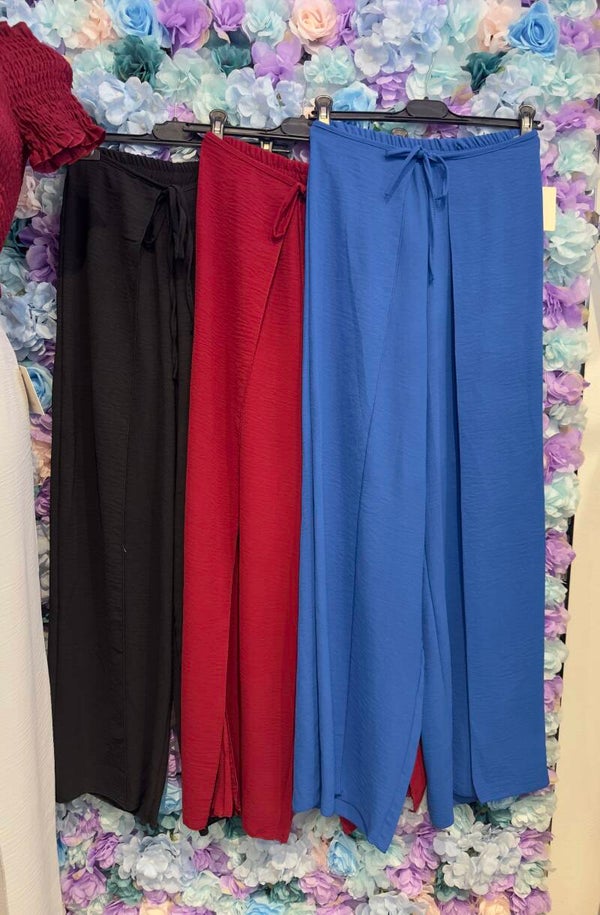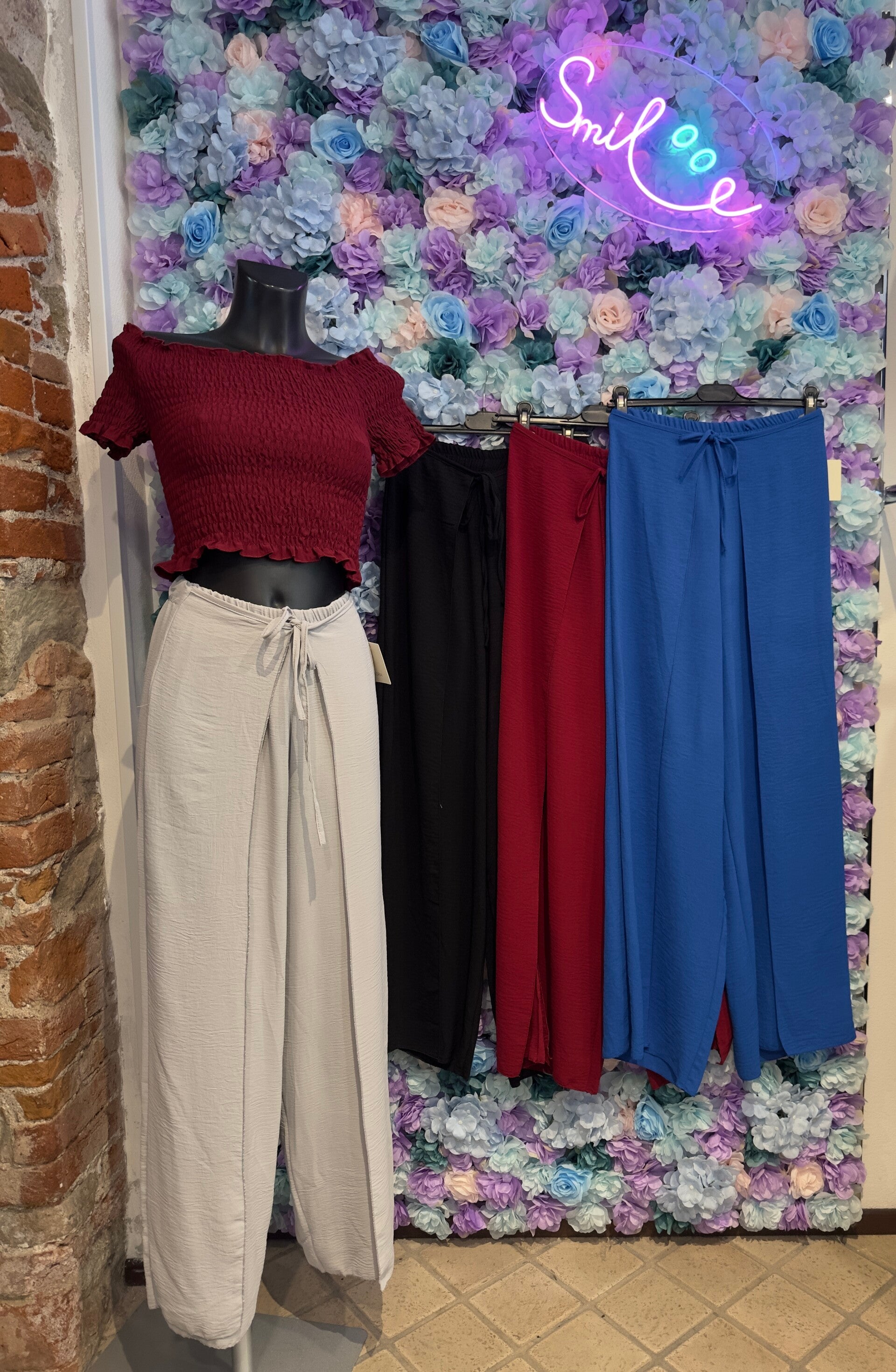 Pantalone gamba larga con spacco sui lati, super fresco, casual o elegante, tg unica elasticizzato in vita (veste da S a XL)