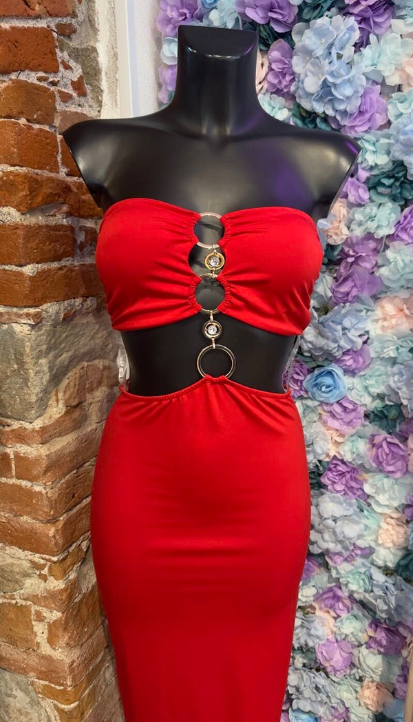 Abito stretto elasticizzato con apertura, media lunghezza con spacco, tg unica veste da XS a M