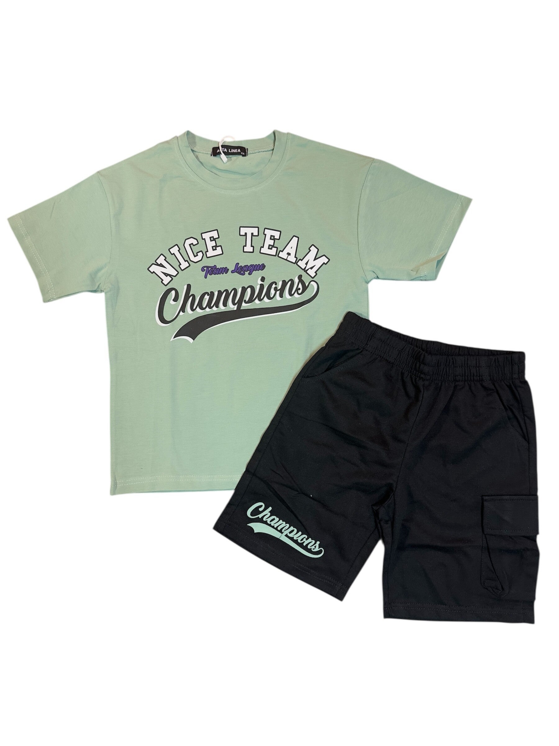 Completo cotone colore salvia e nero, da 6 a 16 anni