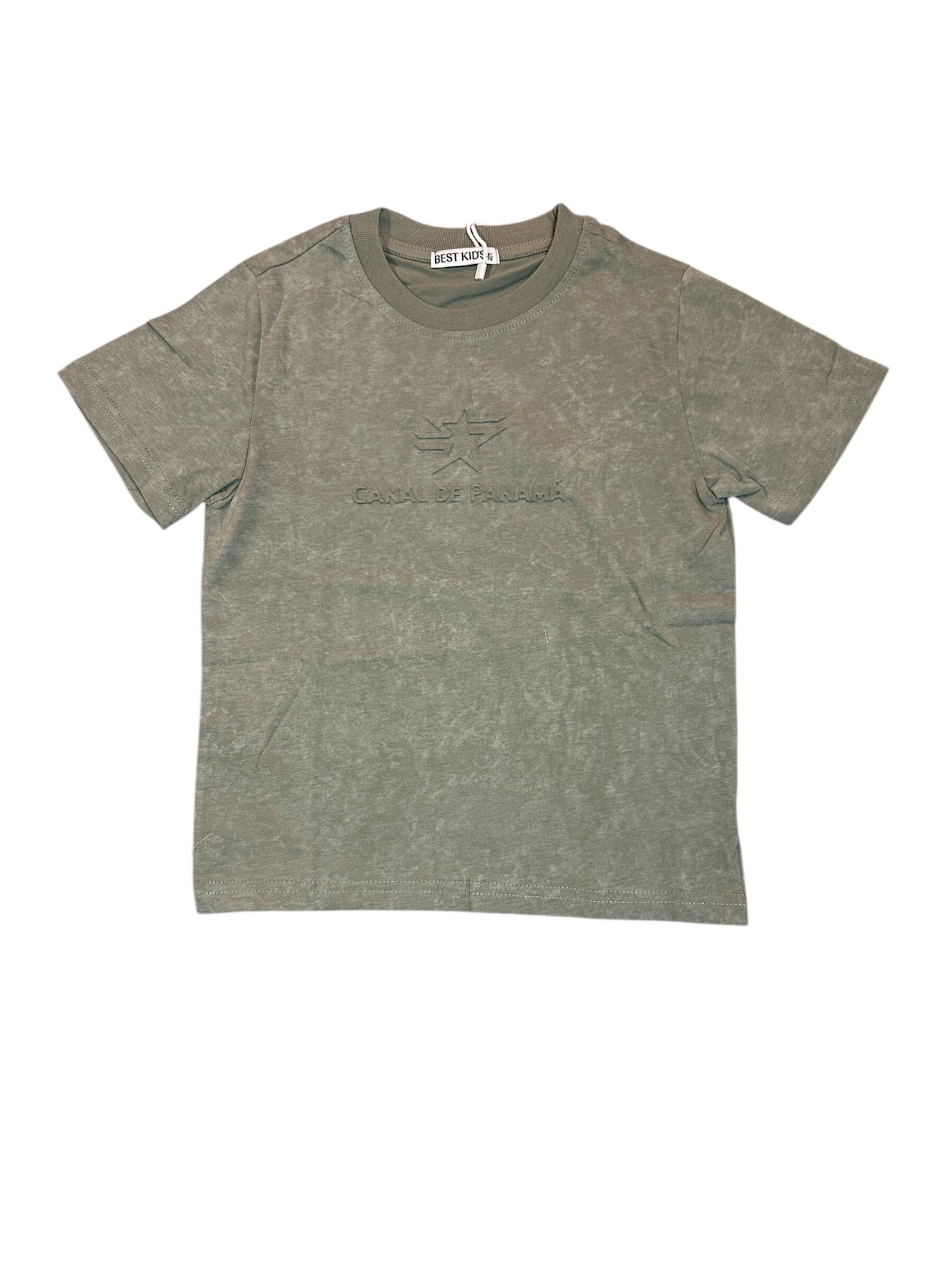 T shirt cotone taglio regolare colore verde salvia. Da 4 a 12 anni