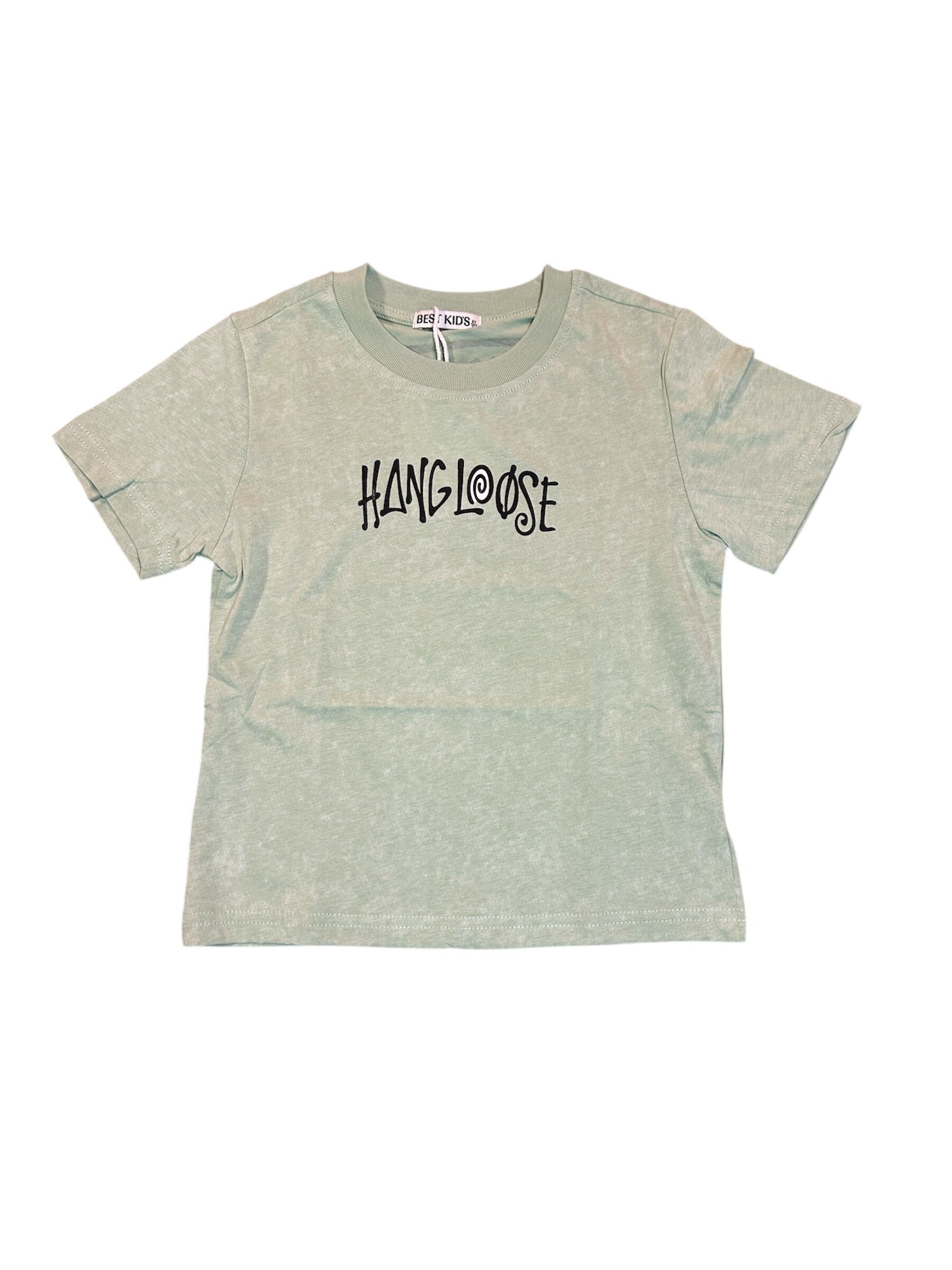 T shirt cotone verde salvia con scritta dietro, da 4 a 12 anni