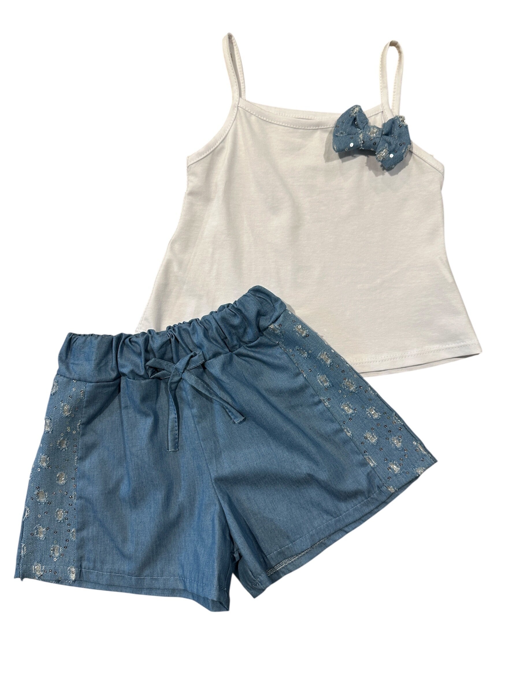 Completo composto da canotta in cotone e jeans sfizioso comodo senza bottoni. Da 2 a 12 anni