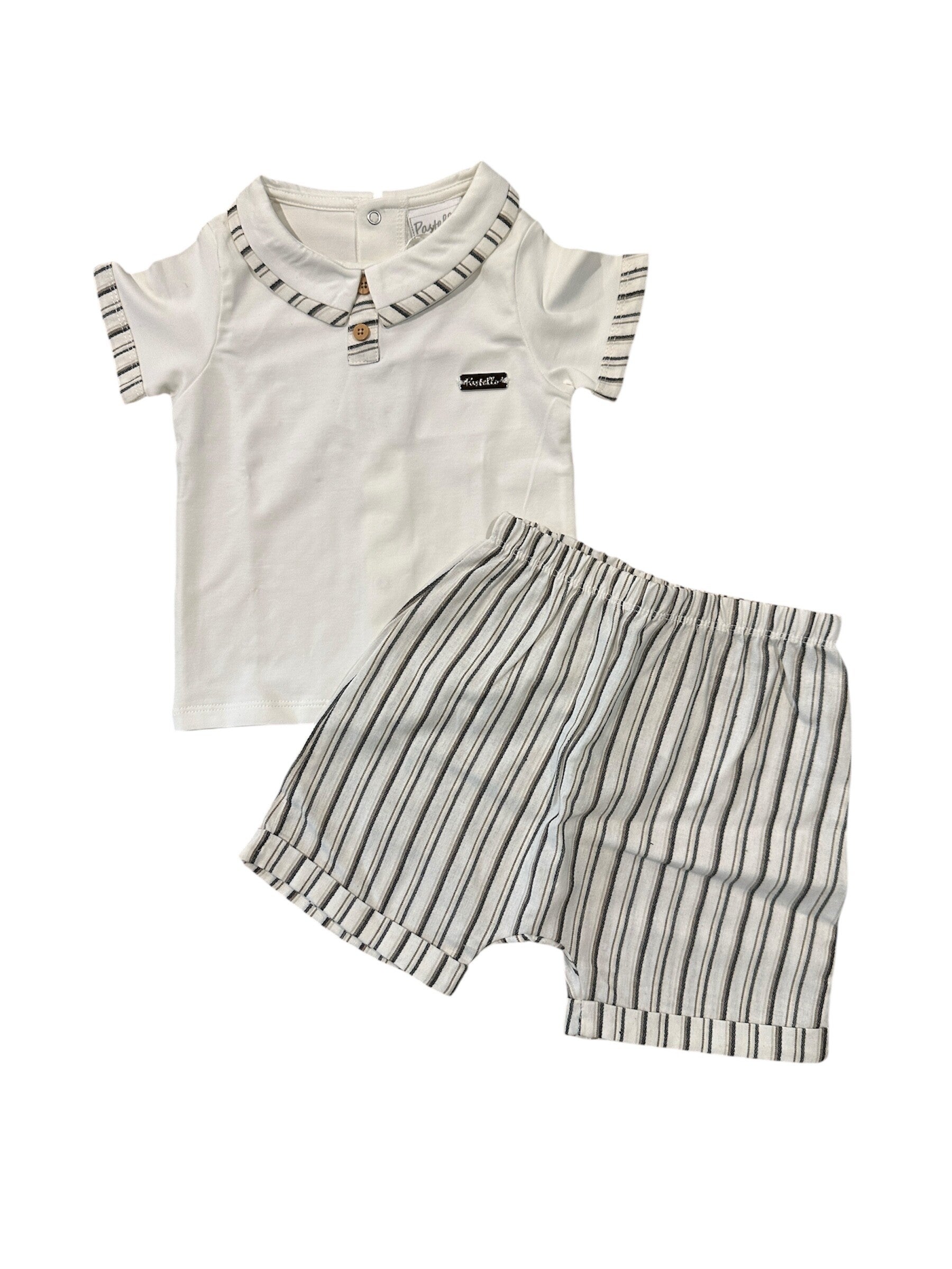 Completo cotone effetto elegante composto da polo e bermuda morbidi nei colori del beige. Da 12 a 36 mezi