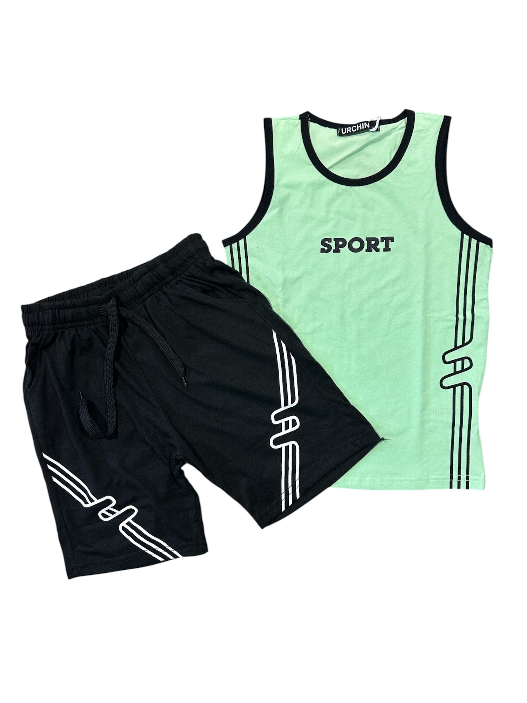 Completo cotone composto da canotta verde e pantaloncini nero, da 8 a 16 anni