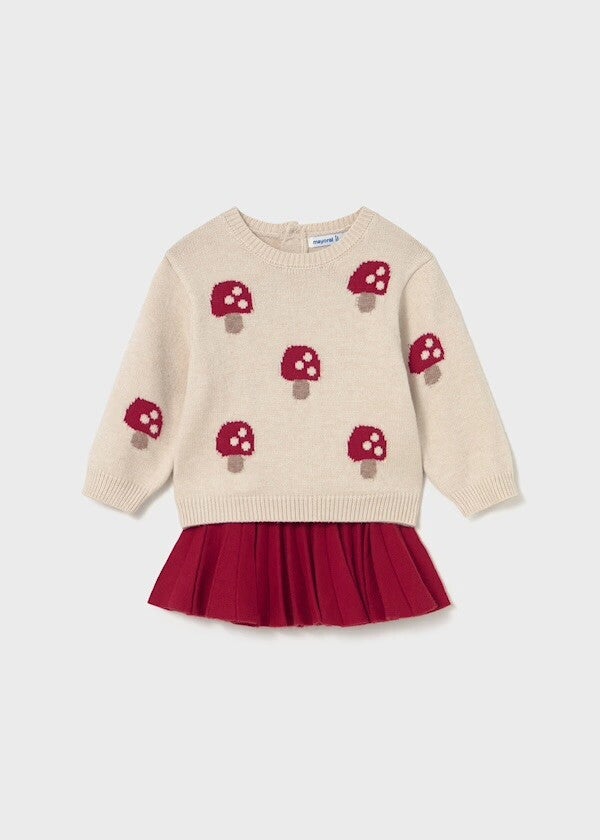 Completo in viscosa composto da gonnellina morbida e maglioncino Mayoral. Da 6 a 36 mesi