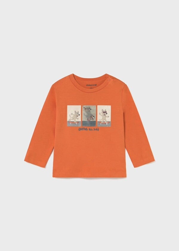 Maglia cotone Mayoral manica lunga, con stampa centrale che cambia in base alla posizione. Da 6 a 36 mesi