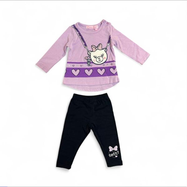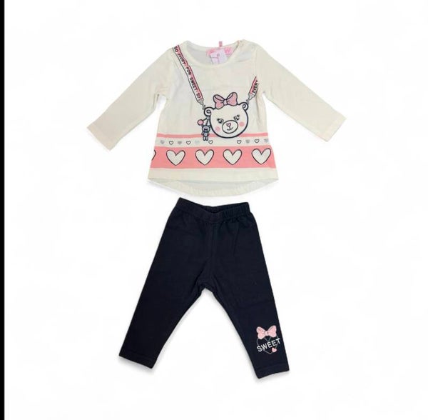 Completo caldo cotone composto da maxi maglia e leggins. Da 3 a 24 mesi. 3 colori.