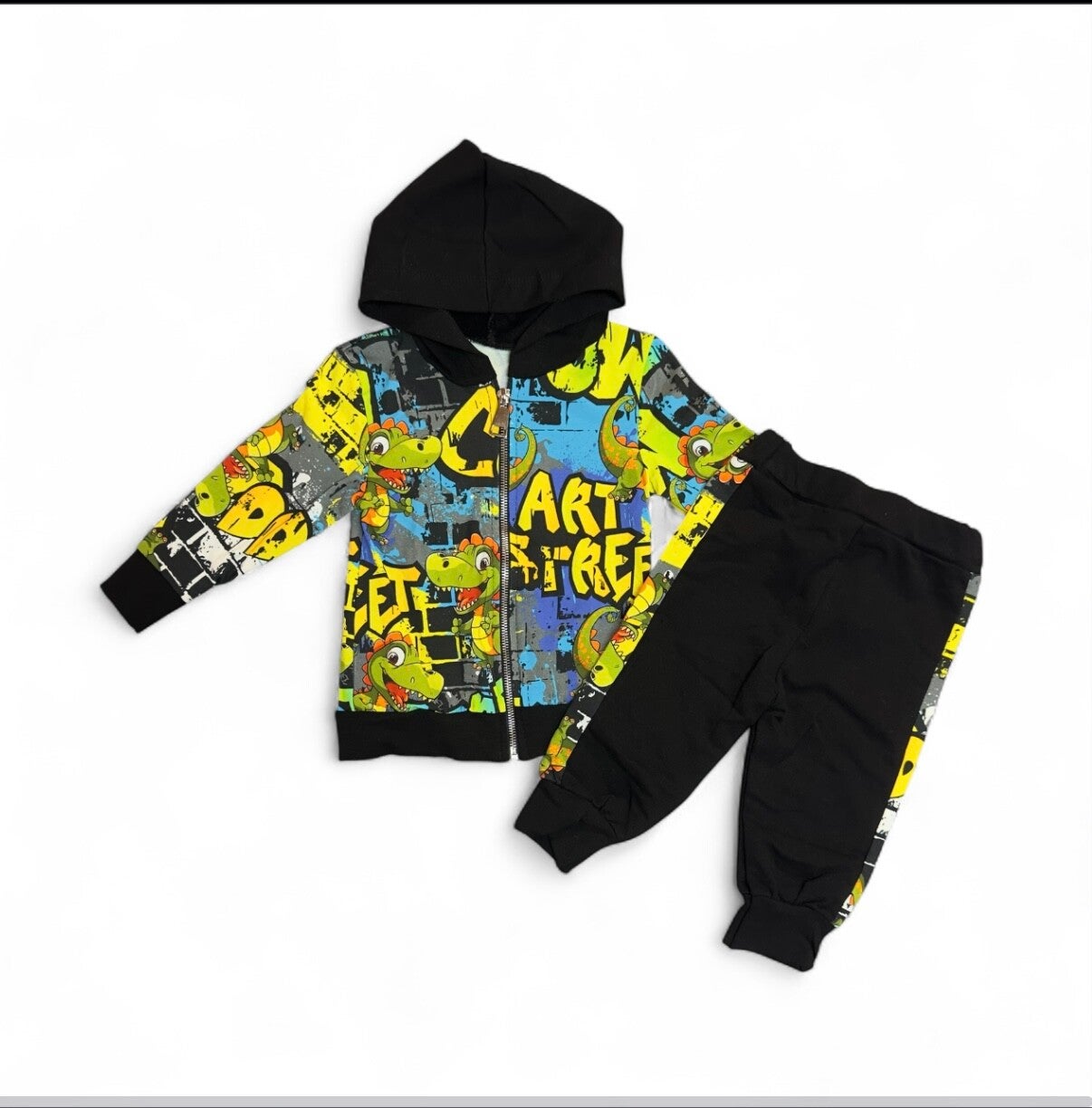 Tuta caldo cotone composta da felpa con zip e cappuccio e pantalone. Da 12 a 36 mesi