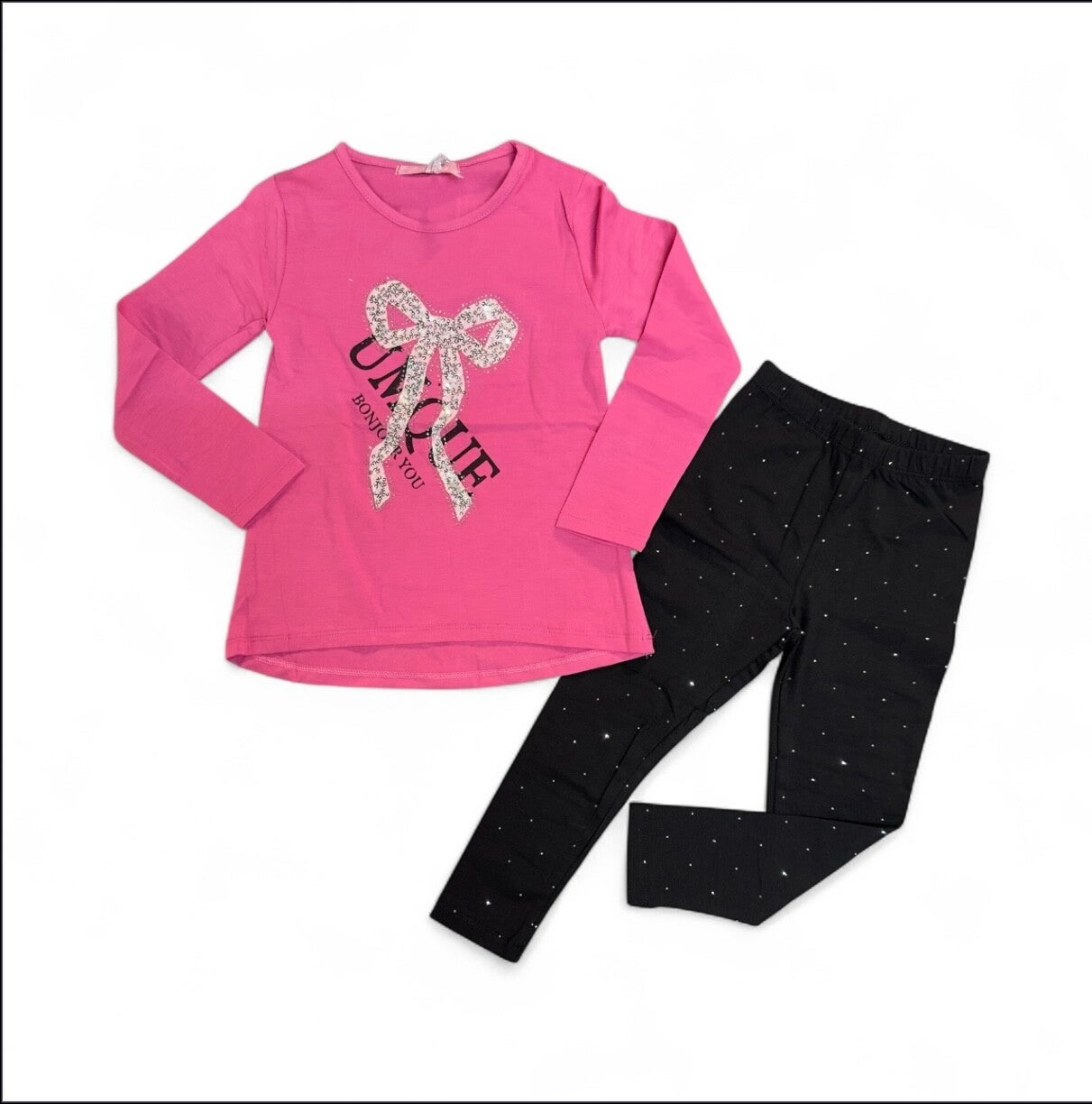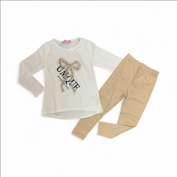 Completo caldo cotone composto da maxi maglia e leggins in lurex. Da 4 a 12 anni 3 varianti.