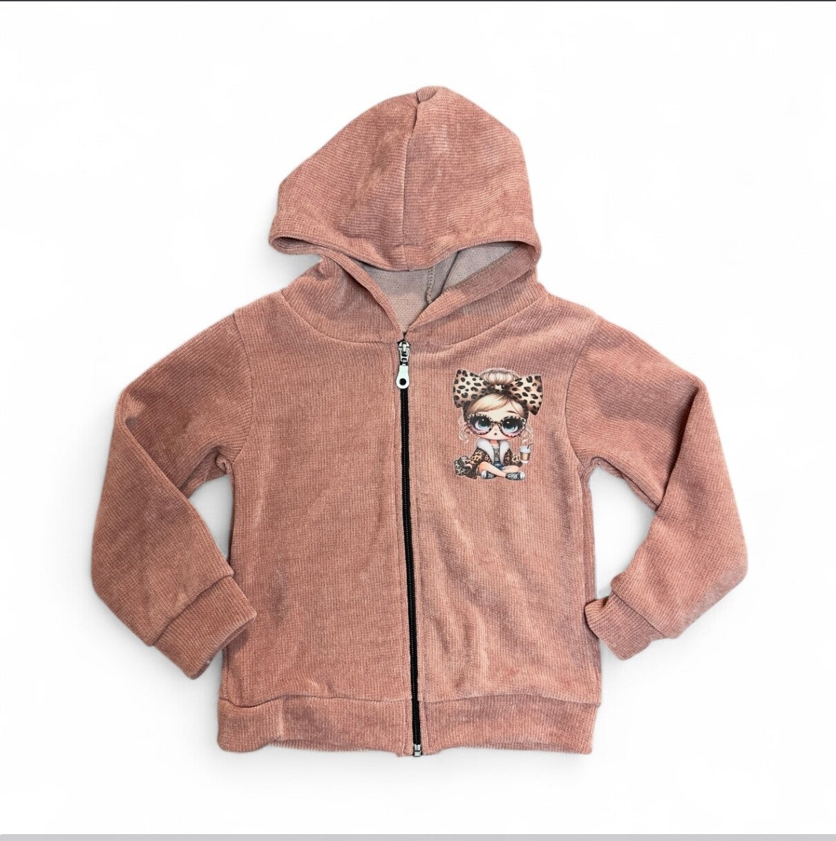 Felpa corposa con zip e cappuccio rosa antico. Da 4 a 14 anni