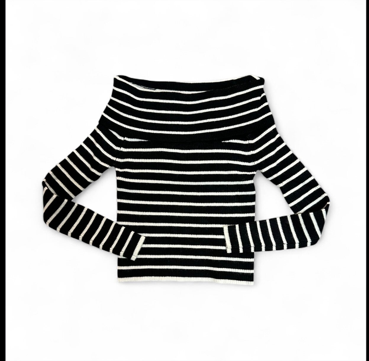 Maglioncino a costine rigato modello aderente e crop con scollo a barchetta. Da 4 a 14 anni
