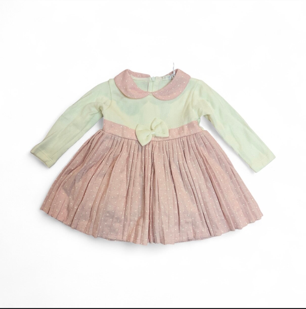 Abito corposo con zip dietro e gonna a pieghe. Da 3 a 18 mesi. 2 varianti colore