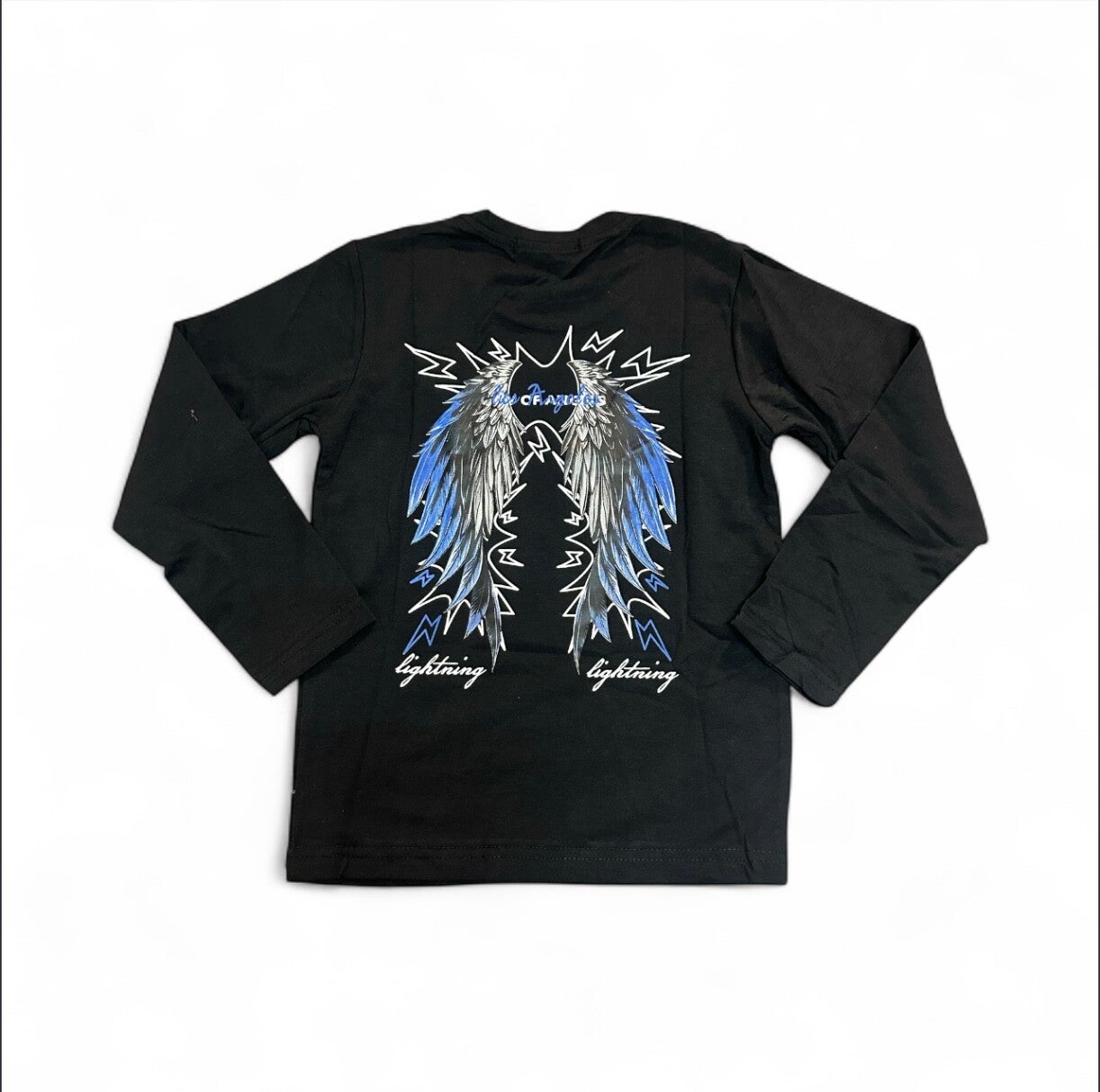 Maglia caldo cotone girocollo con scritta davanti e disegno di ali dietro. Da 6 a 16 anni 3 varianti colore