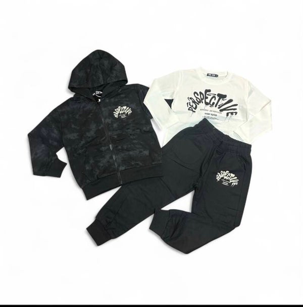 Tuta caldo cotone composta da felpa con zip e cappuccio, pantalone morbido e maglia manica lunga. Da 4 a 12 anni disponibile in 3 colori