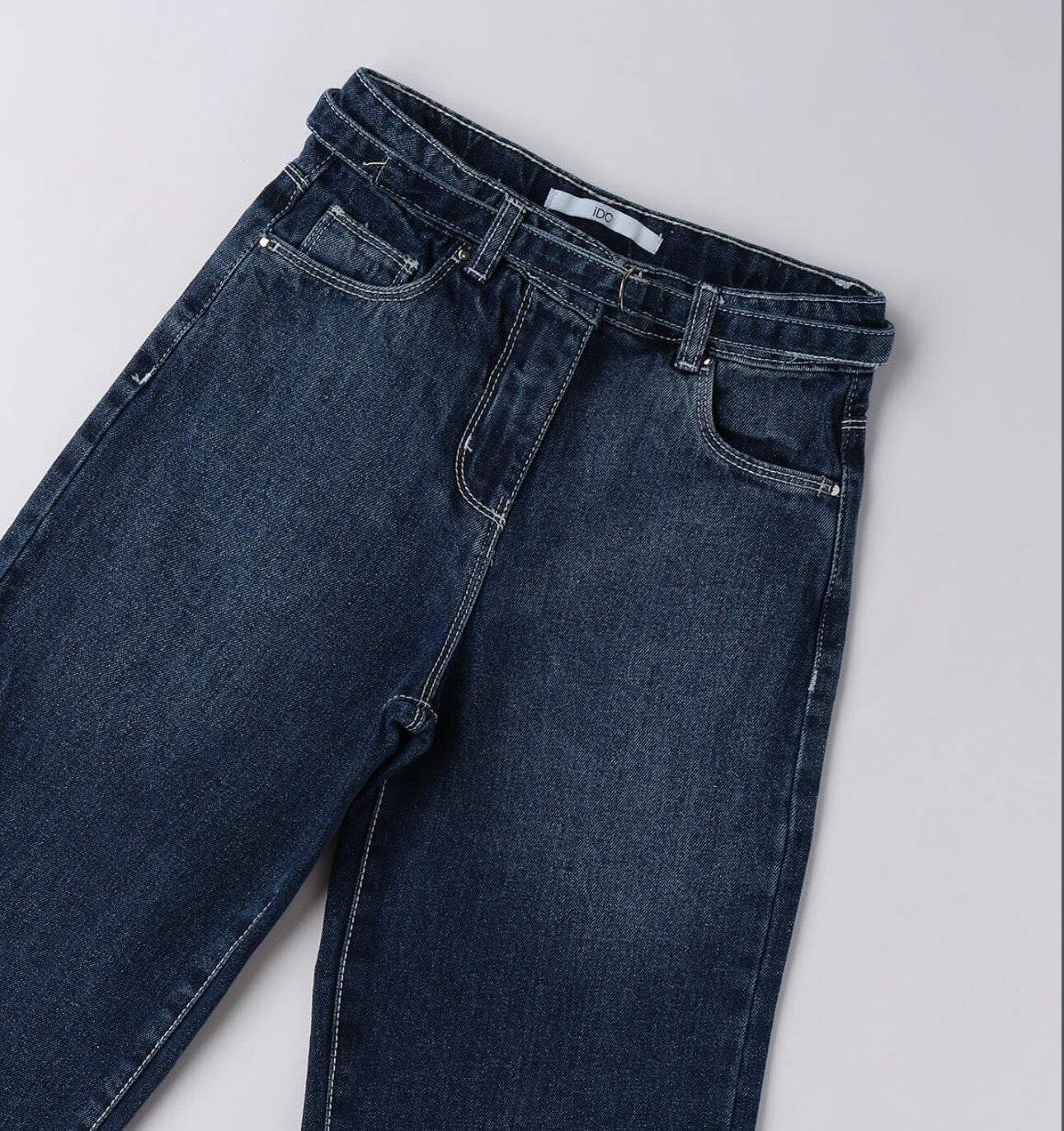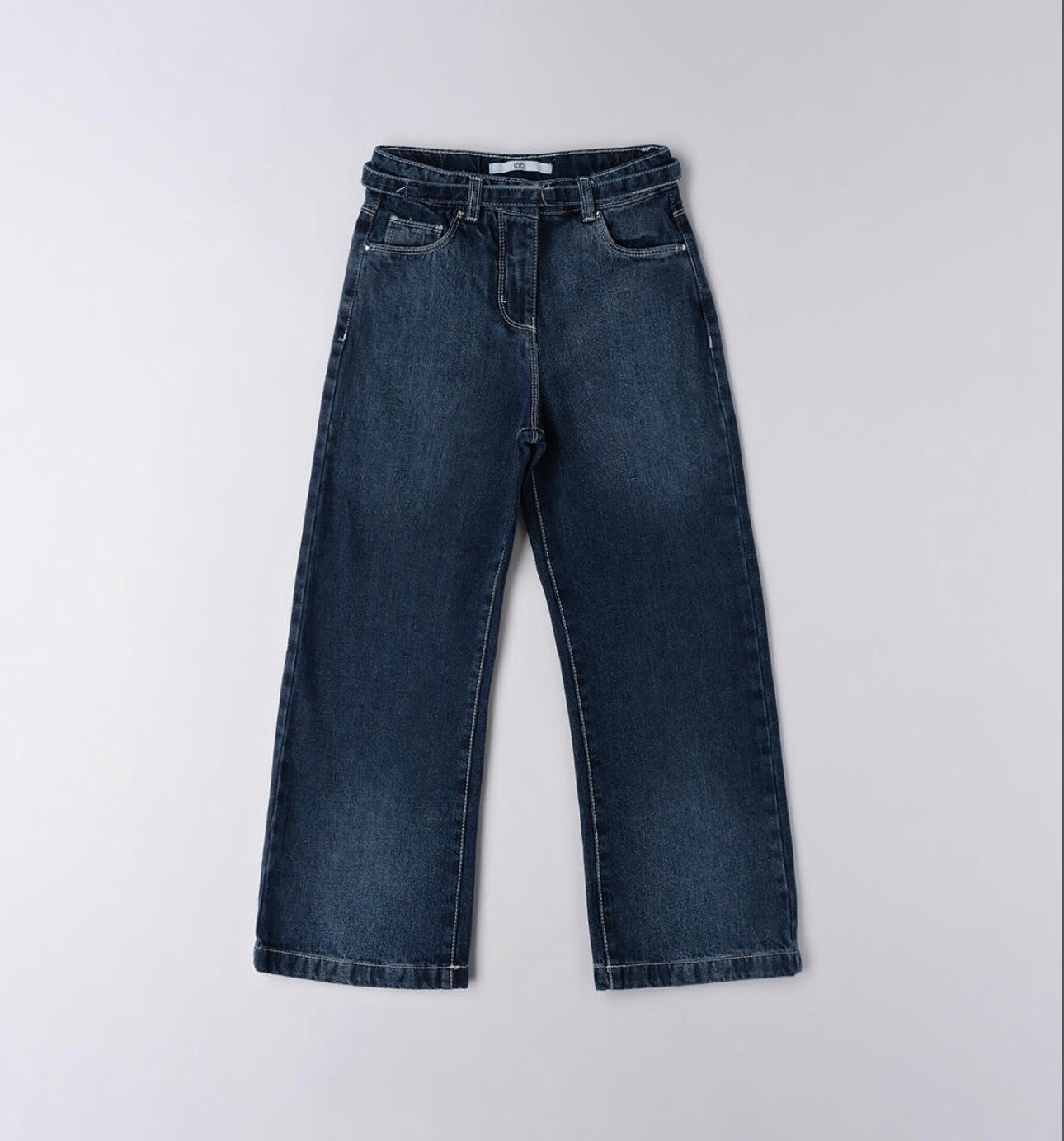 Jeans a palazzo con cintura in jeans e coulisse in vita. Da 8 a 16 anni lavaggio scuro IDo