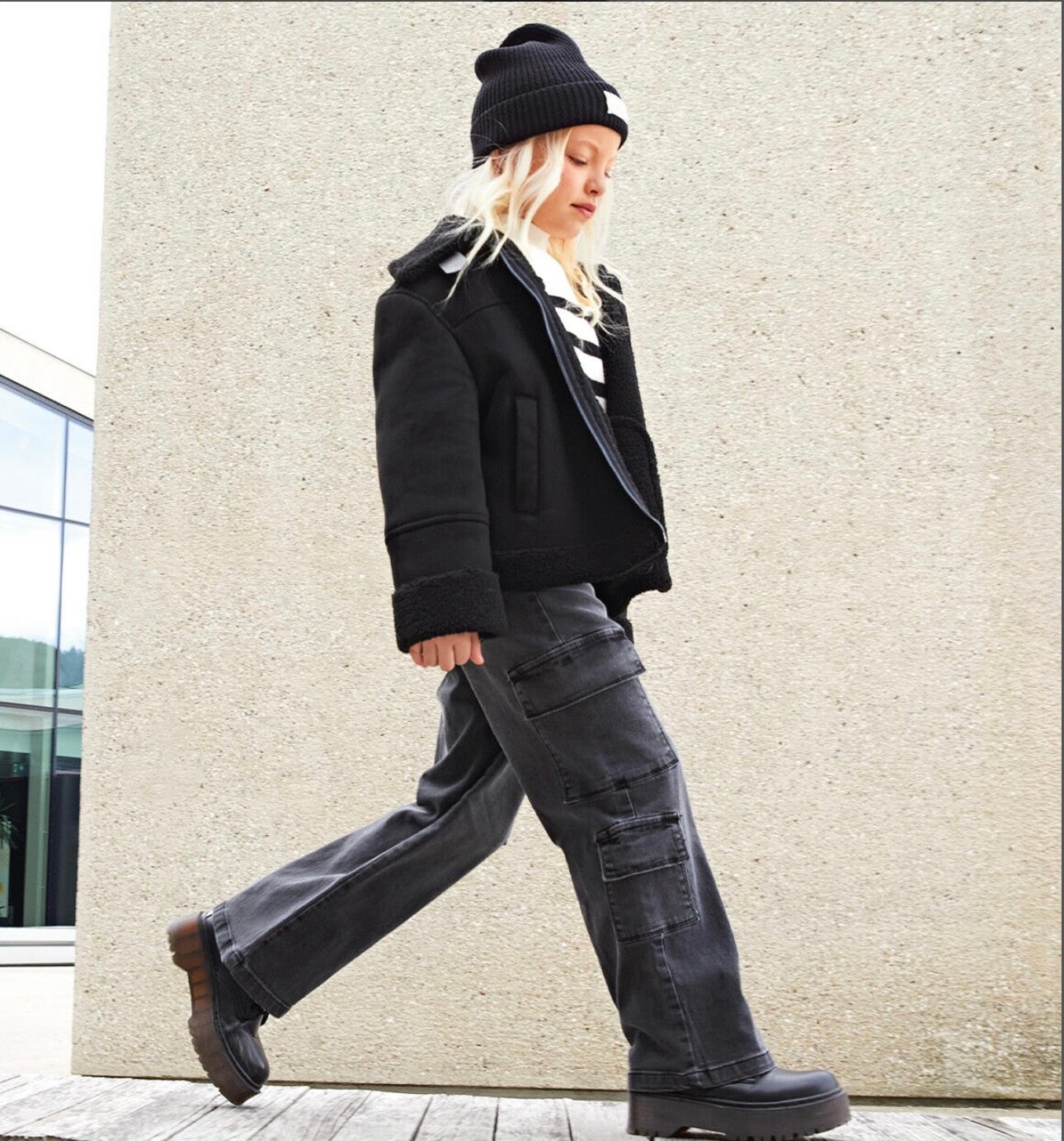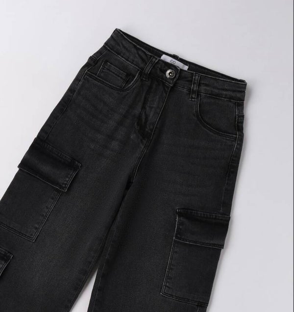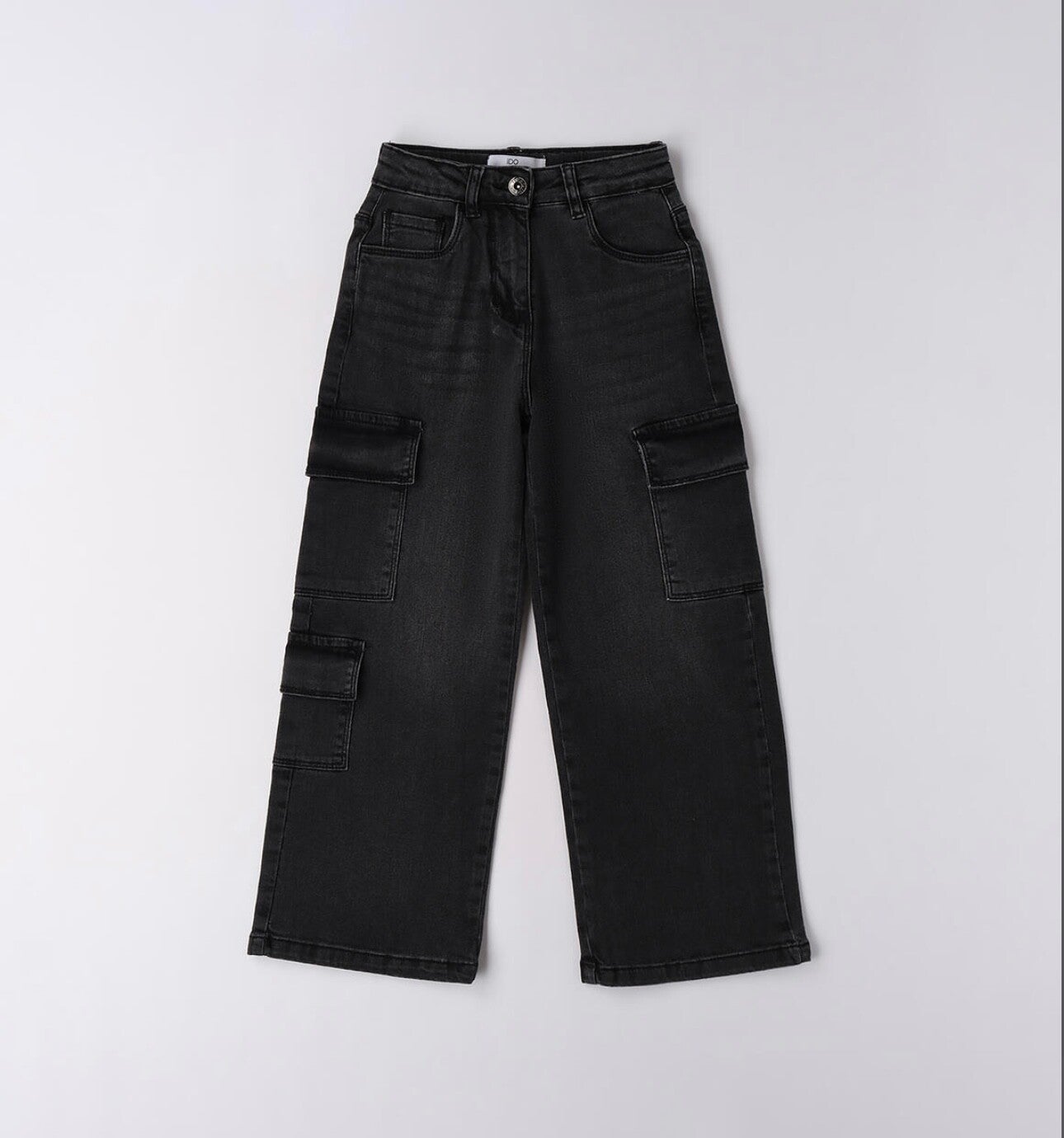 Jeans palazzo tasconato IDo con coulisse in vita da 8 a 16 anni. Grigio scuro