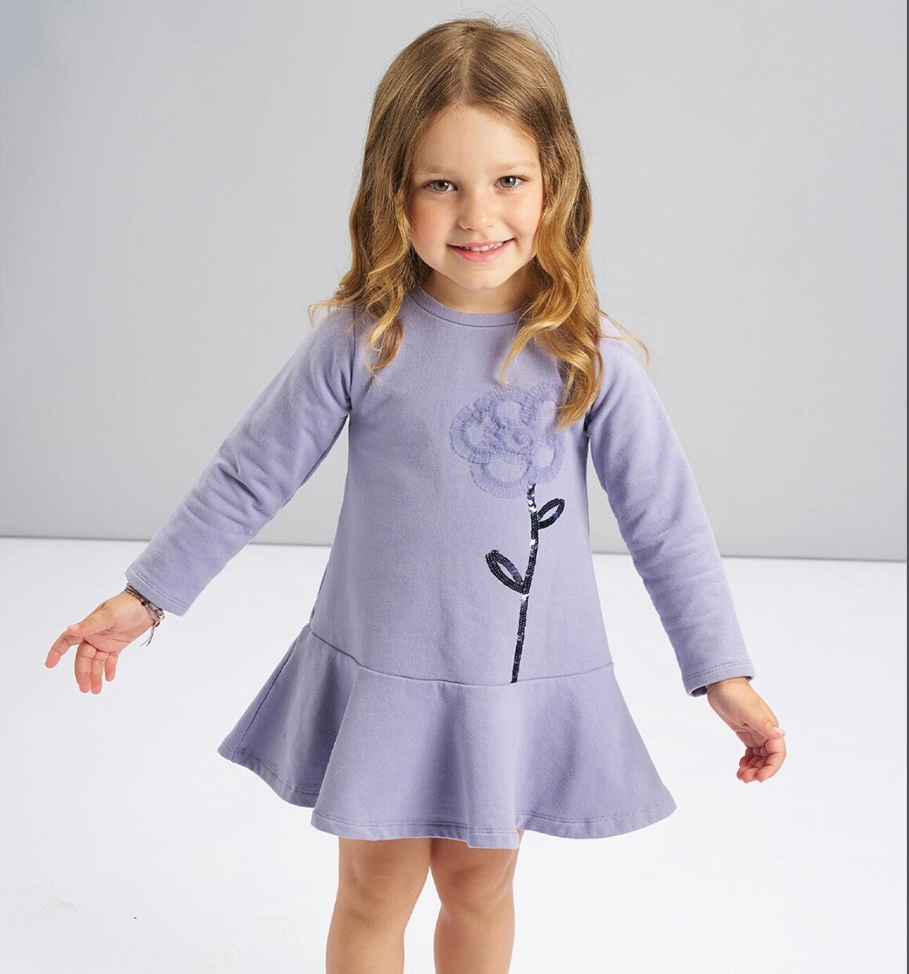 Abito in caldo cotone IDo colore lilla, super morbido effetto elegante. Da 4 a 8 anni