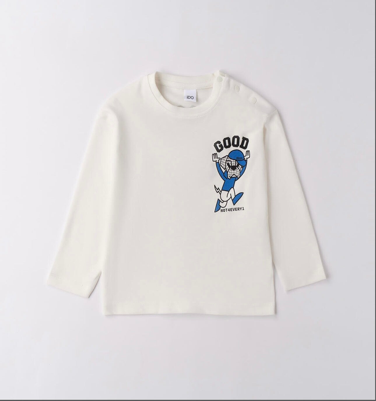 maglia cotone girocollo over da 4 a 8 anni Ido con scritta e stampa dietro