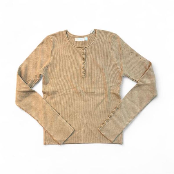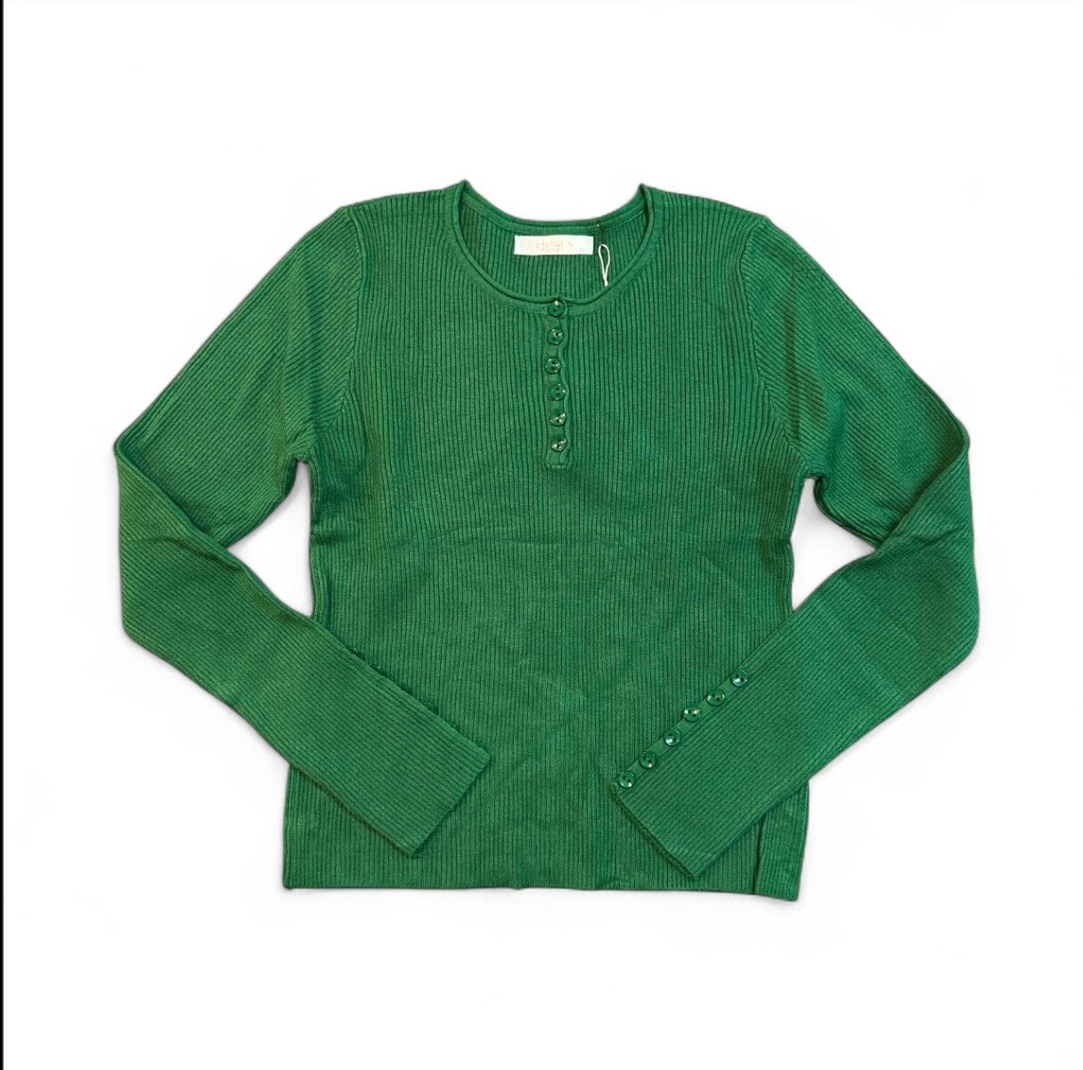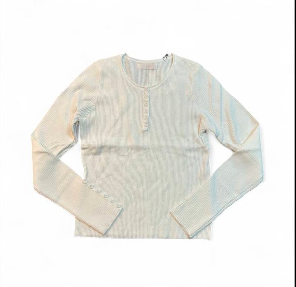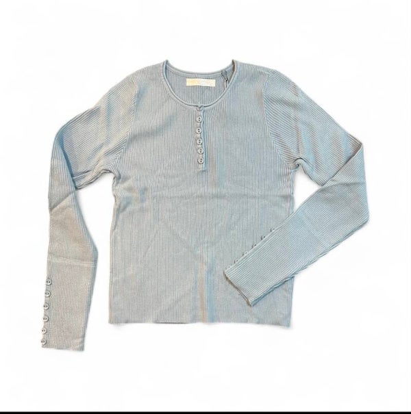 Maglia in morbida viscosa a costine elasticizzata, girocollo con bottoni anche su maniche tono su tono. Tg unica disponibile in diversi colori