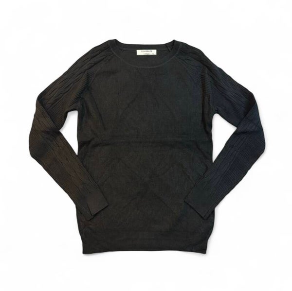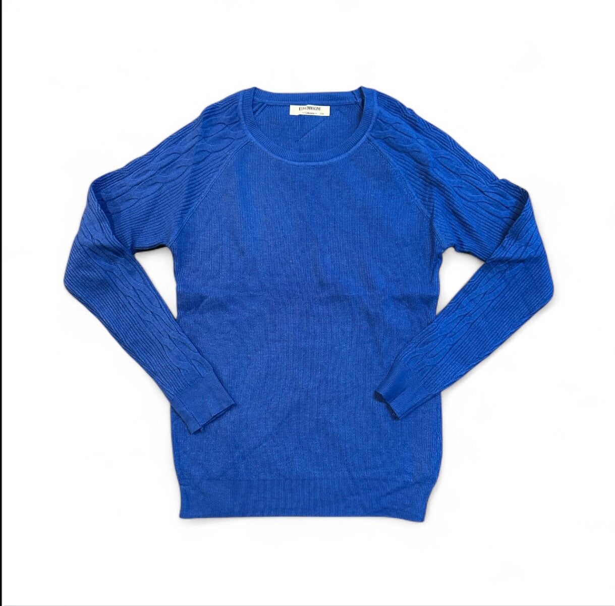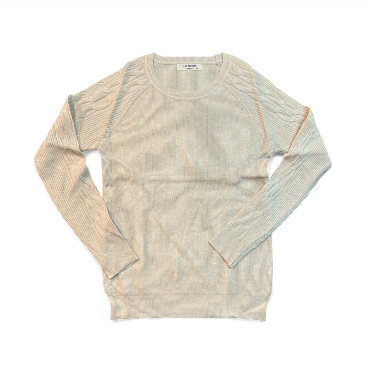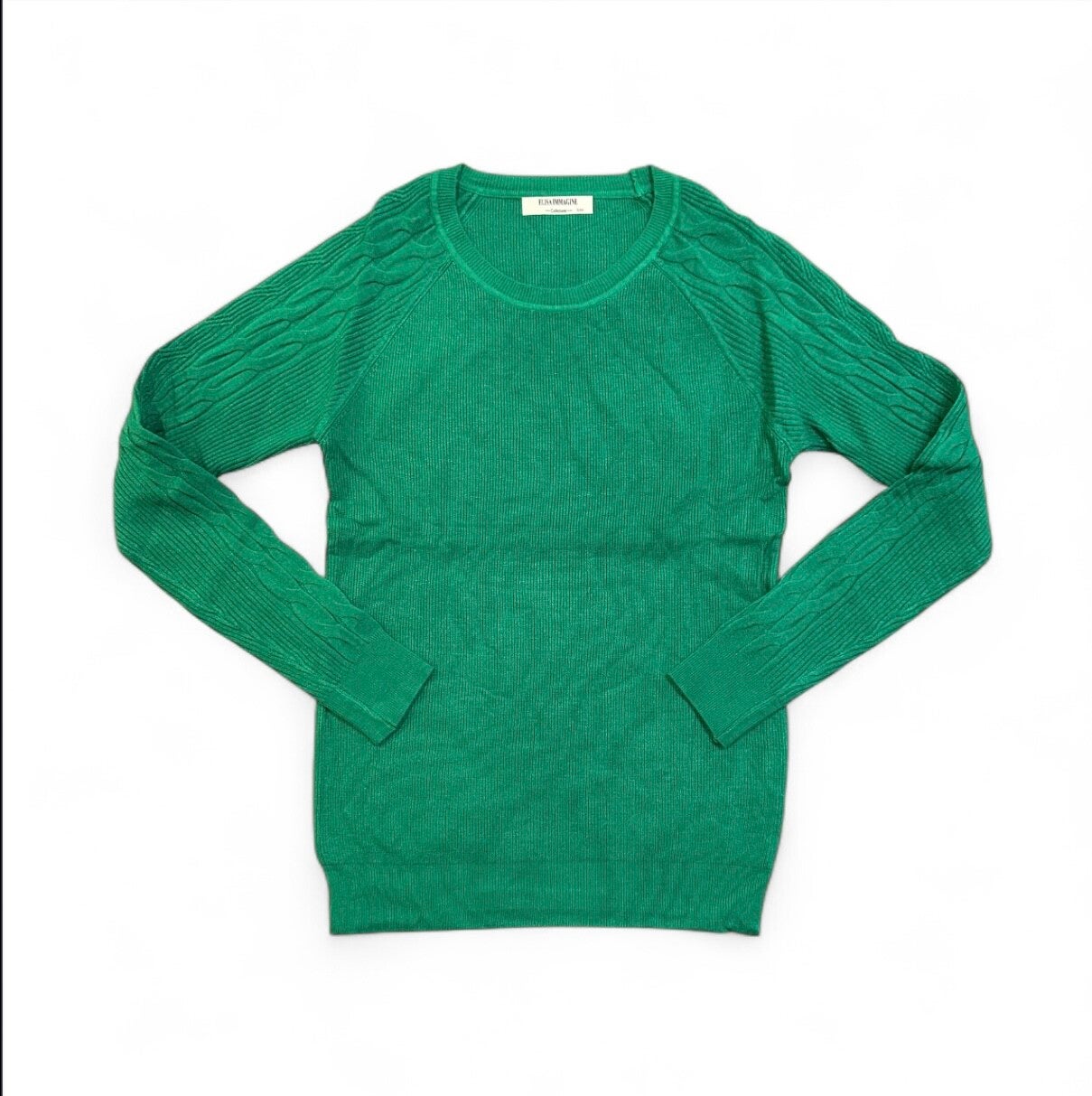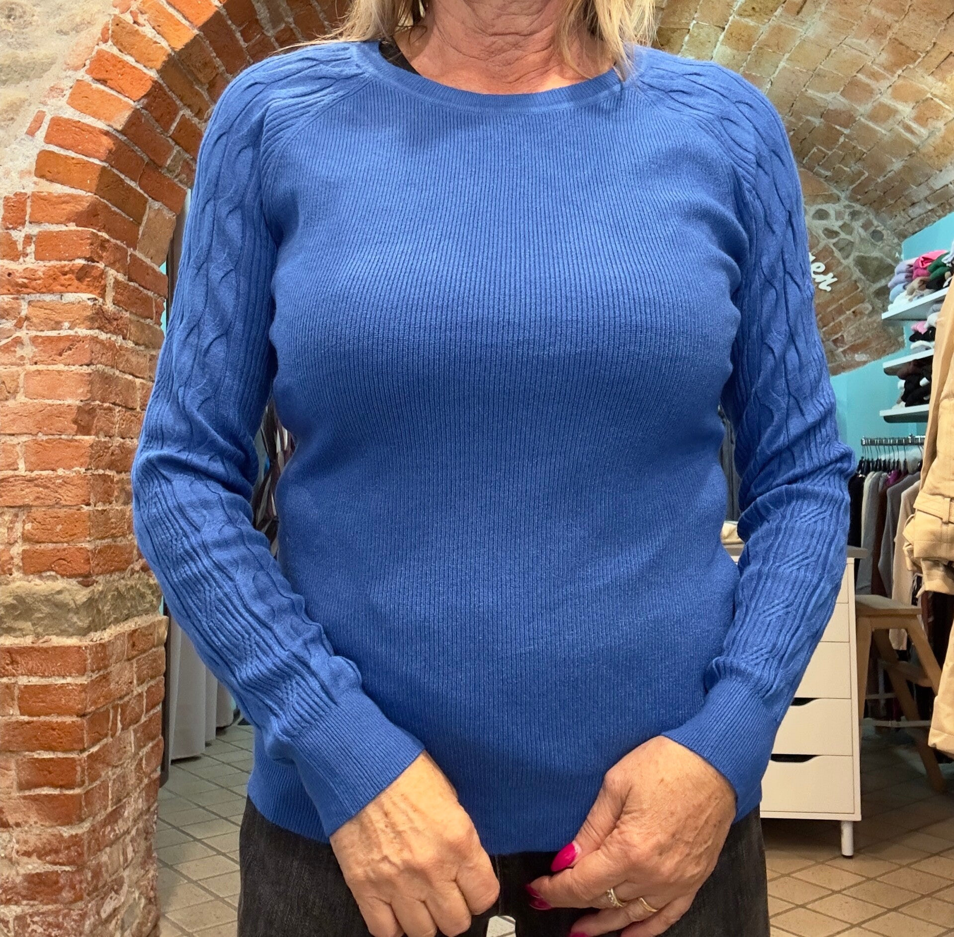 Maglia in morbida viscosa struttura regolare girocollo con trama nodo su maniche. Tg S/M o L/XL elasticizzata disponibile in diversi colori