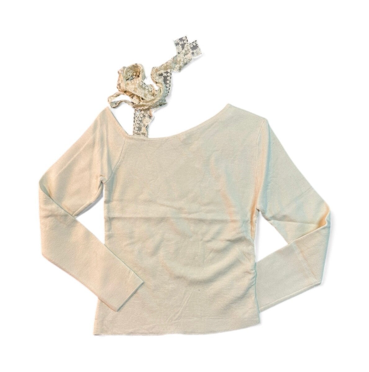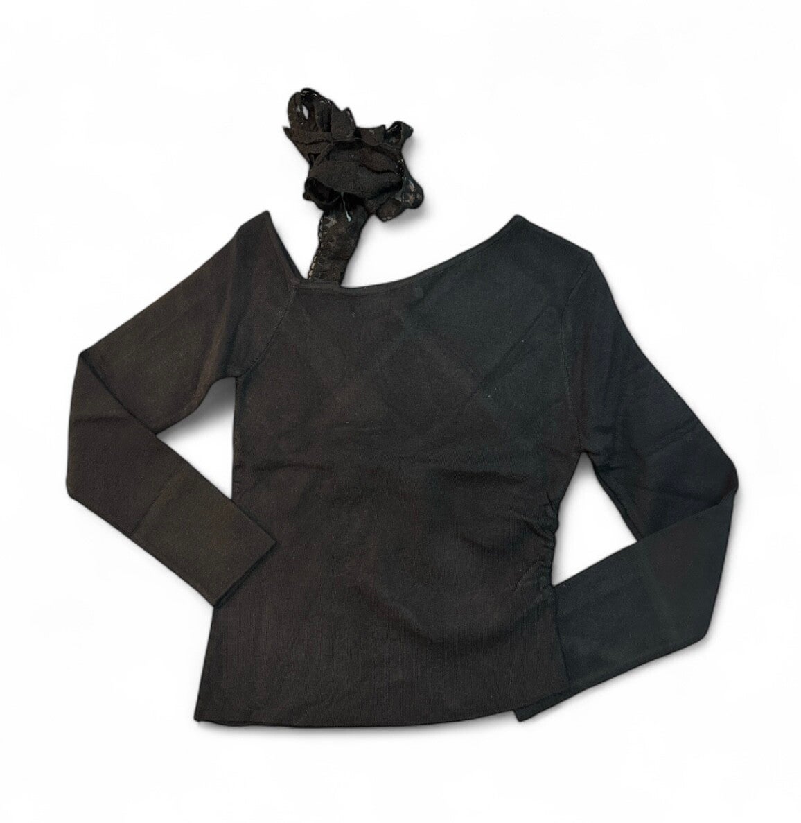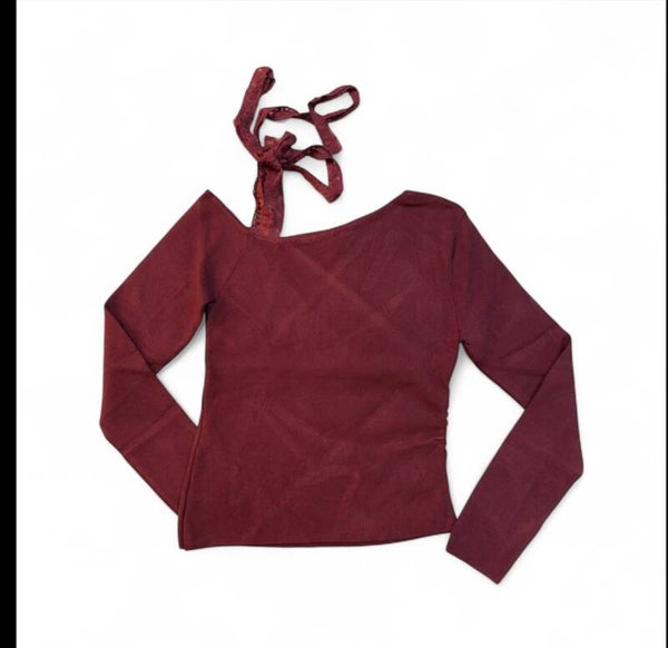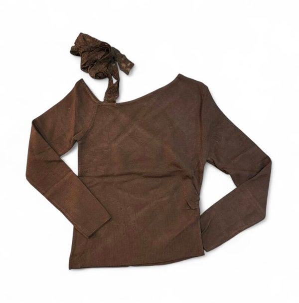 Maglia in viscosa elasticizzata con scollo monospalla e laccio in pizzo modificabile. Tg unica disponibile in diversi colori