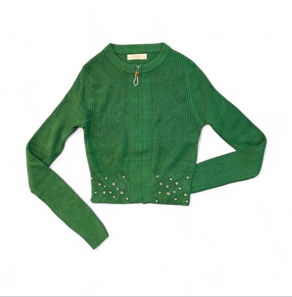 Giacchetta in morbida viscosa a costine con zip e diamantini incastonati. Tg unica elasticizzata, diversi colori
