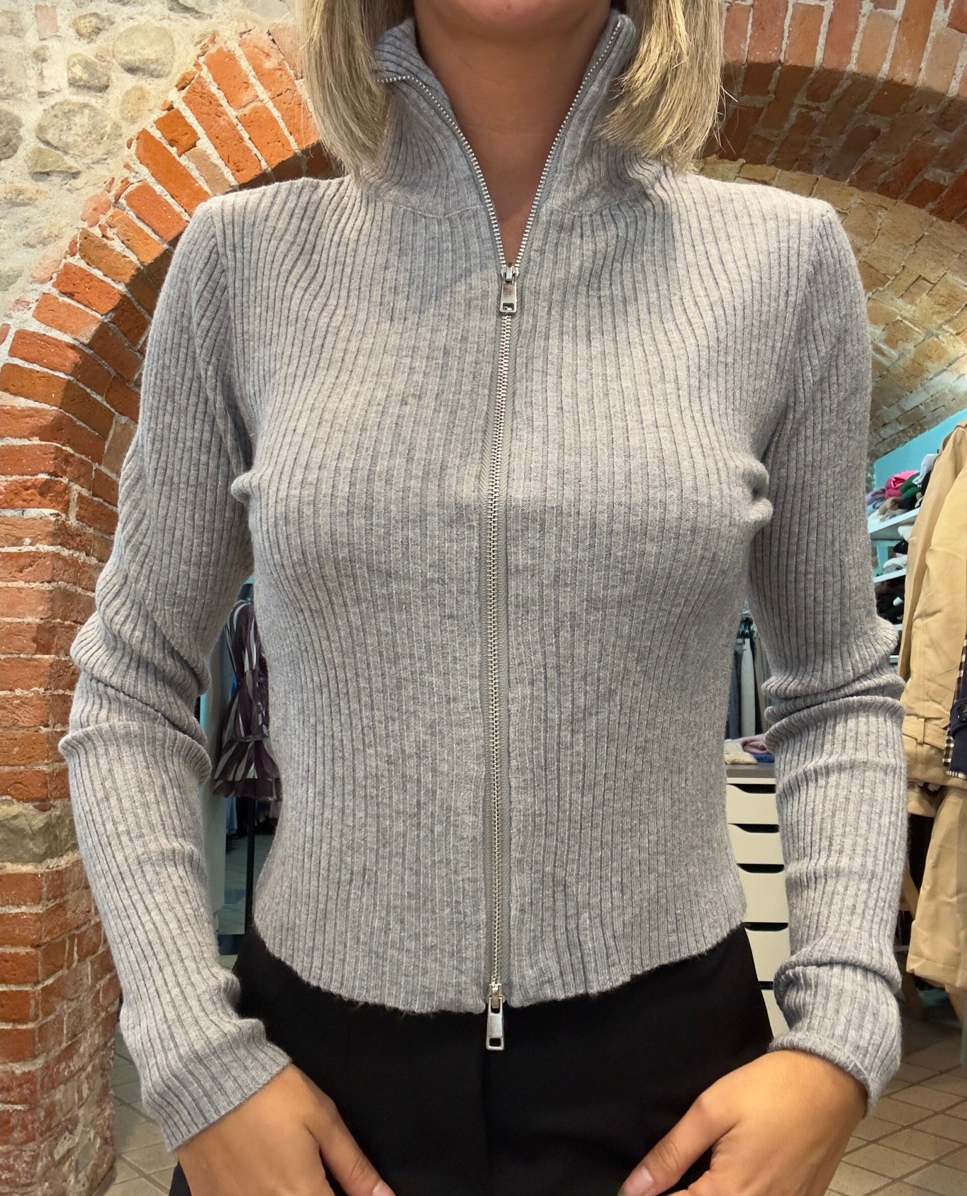 Giacchetto in morbida viscosa a costine elasticizzato, con collo alto, modello corto tg unica, diversi colori