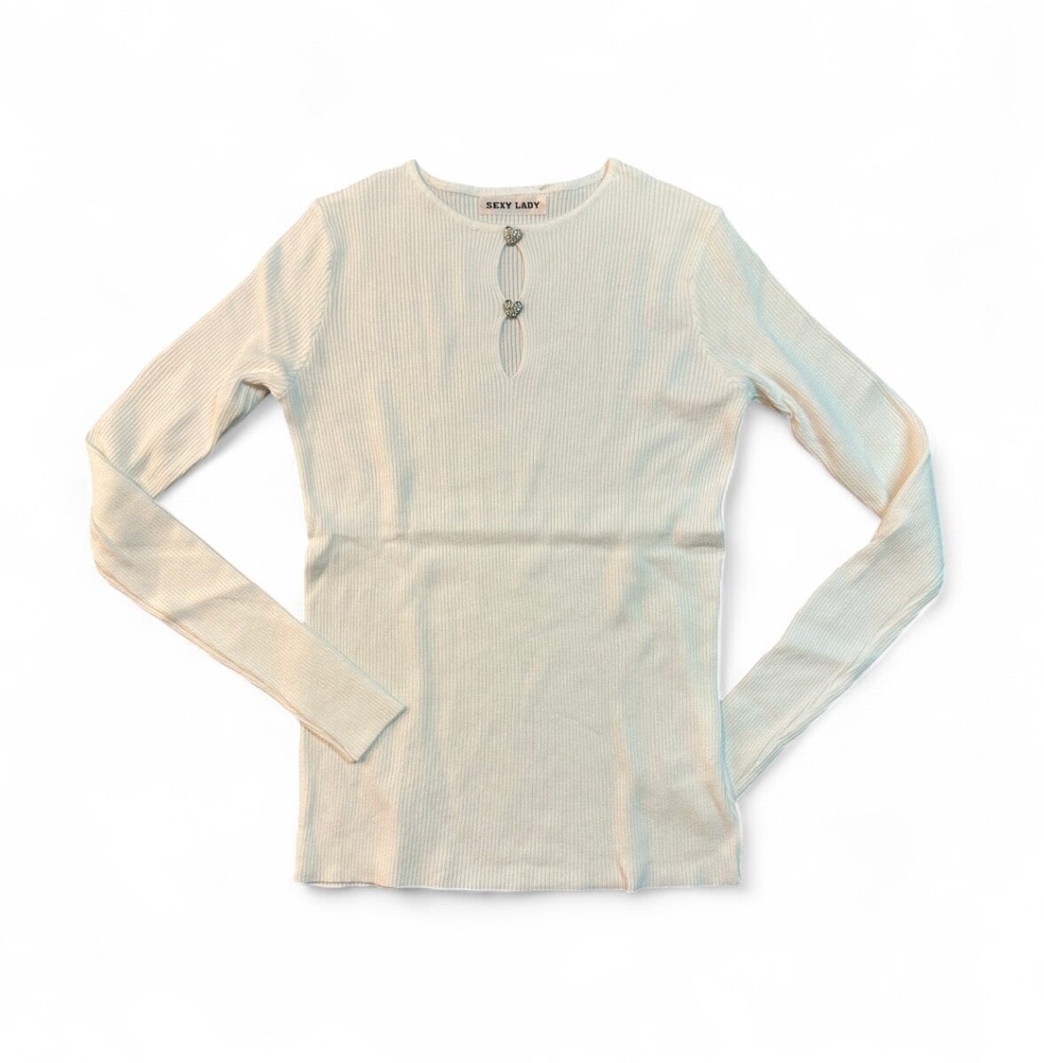 Maglia in morbida viscosa a costine elasticizzata con decoro sul davanti con cuoricini e buchetti. Tg unica diversi colori