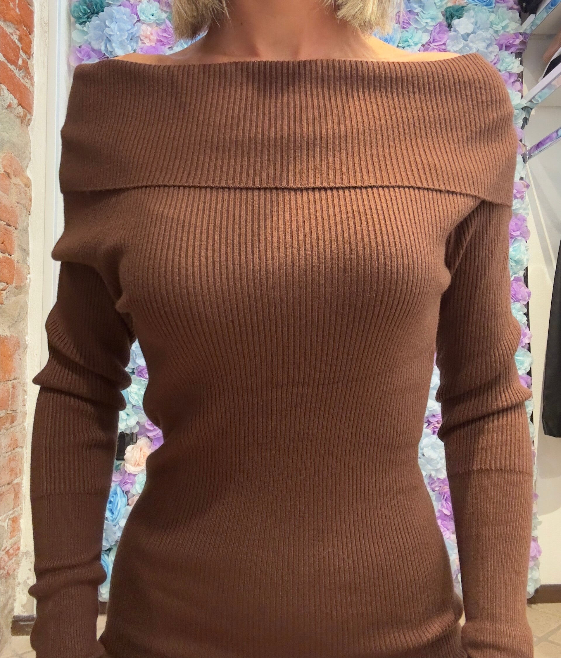 Abito in morbida viscosa a costine, scollo a barchetta o ciambella. Tg unica elasticizzata disponibile in vari colori