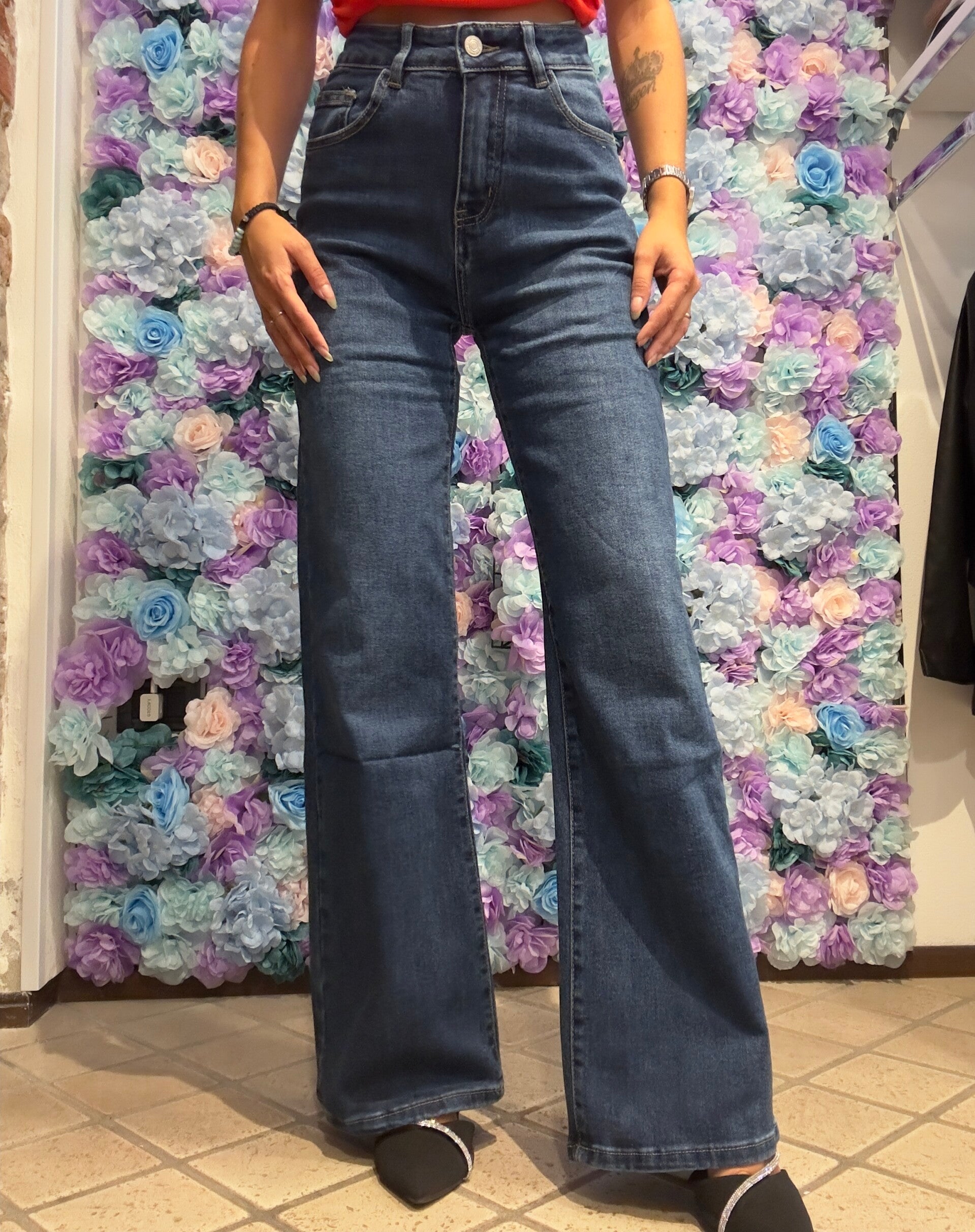 Jeans lavaggio slavato, gamba larga elasticizzato. Da XS a L