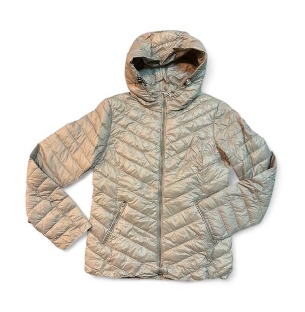 Giubbino 100 grammi beige resistente a acqua e vento, con cappuccio removibile. Da S a XL