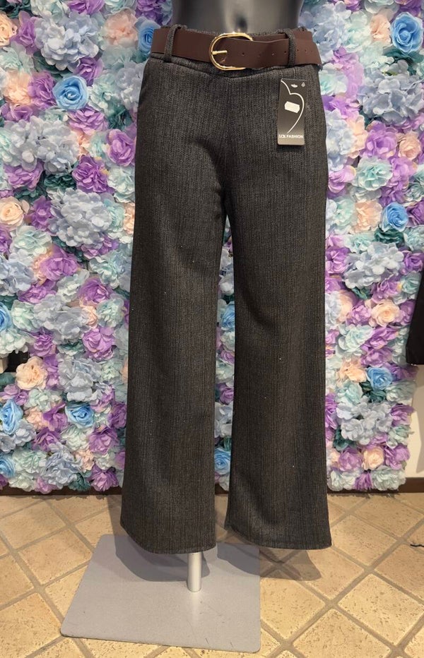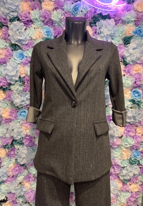 Tailleur caldo composto da blazer lungo e pantalone gamba larga elasticizzato in vita. Vendibile anche separatamente (€29,50 al pezzo)colore antratcite con brillantino nero. Da S a XXL