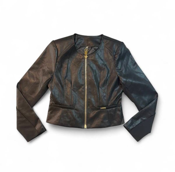 Ecopelle nero con zip oro, senza cappuccio elegante o casual. Da M a XXL
