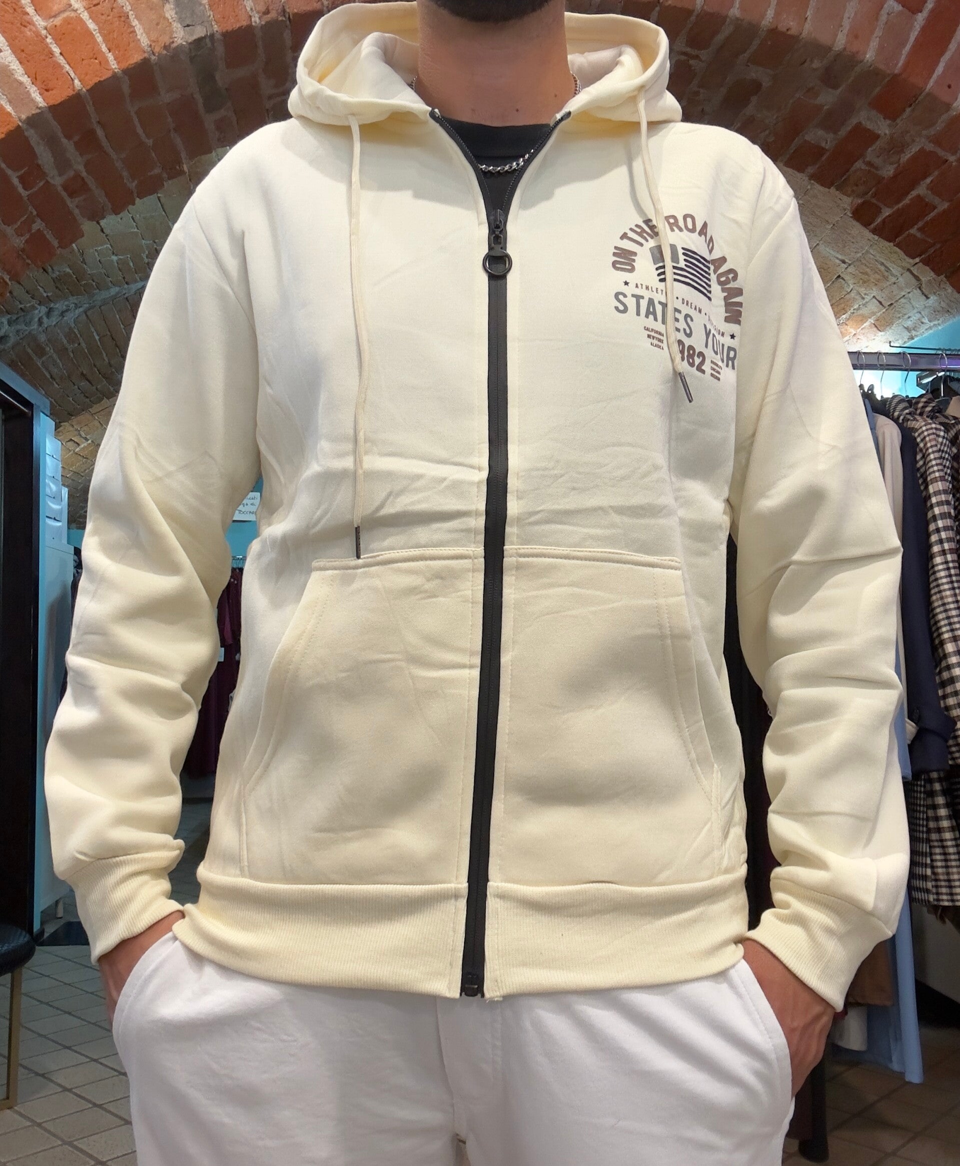 Felpa con zip e cappuccio felpata, disponibile in 3 colori da S a XXL (vestibilita comoda)