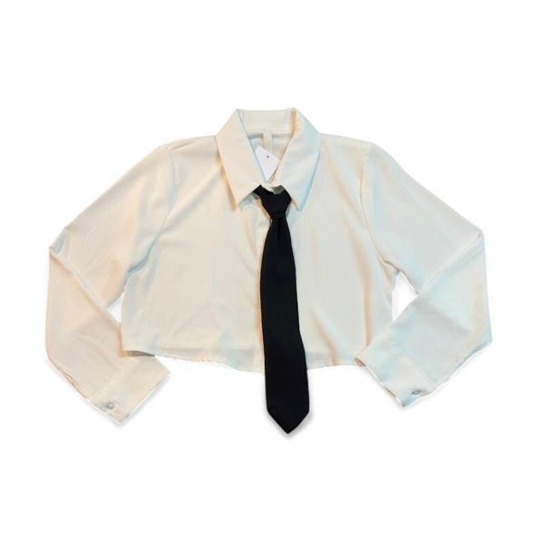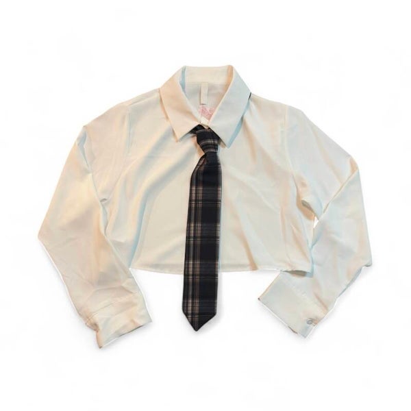 Camicia in tessuto fine a scatoletta tg unica, con cravatta inclusa removibile. Disponibile gonna da abbinare.
