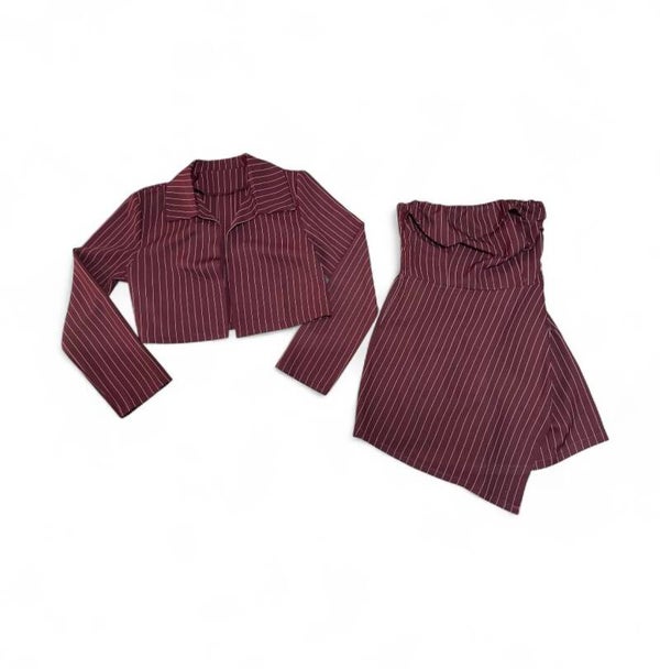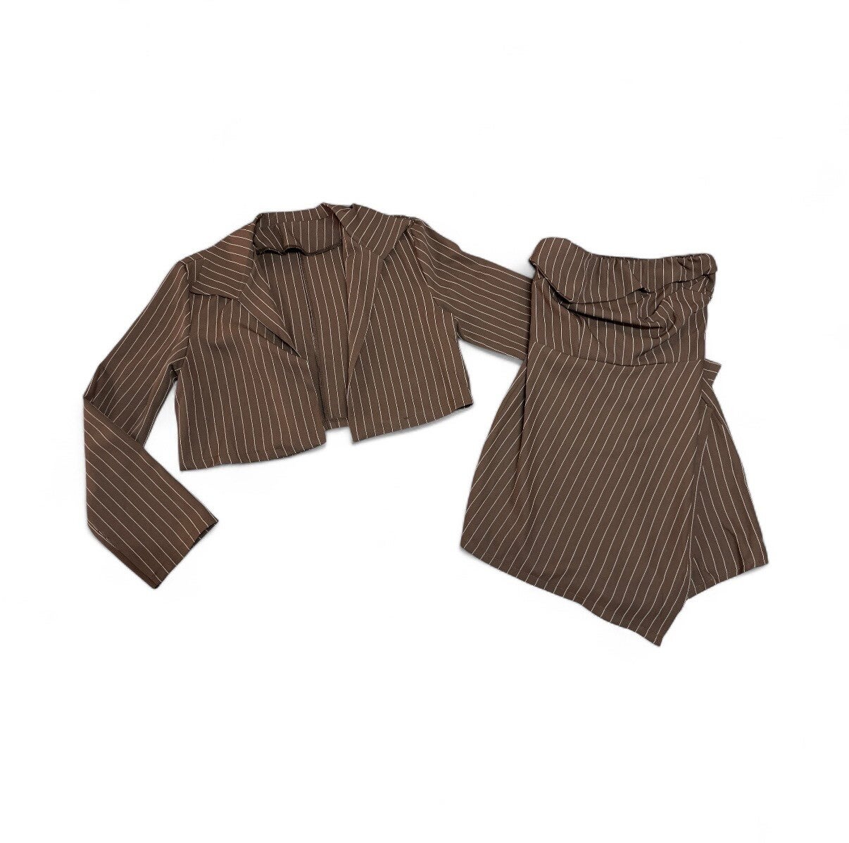 Completo sfizioso composto da tutina elasticizzata dietro tg unica, il suo blazer aperto modello crop. Gessato in vari colori, tg unica