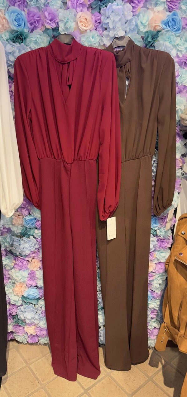 Tuta intera con pantalone gamba larga, zip dietro, casacca effetto camicia morbida anche nelle braccia e spallette. Tg unica veste S-M, colori vari/