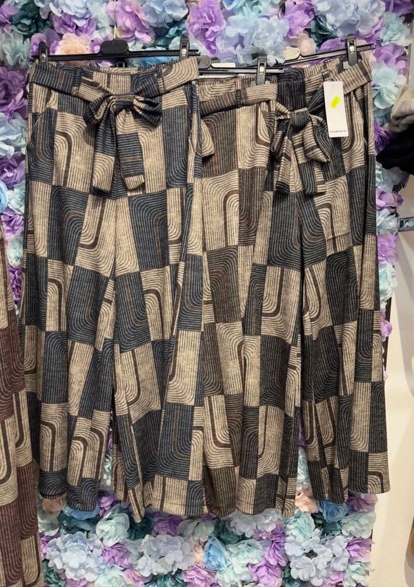 Pantalone gamba larga elasticizzato in vita con cintura in tessuto. Modello con caviglia a vista. Disponibile in diversi colori. Tg unica elasticizzato.