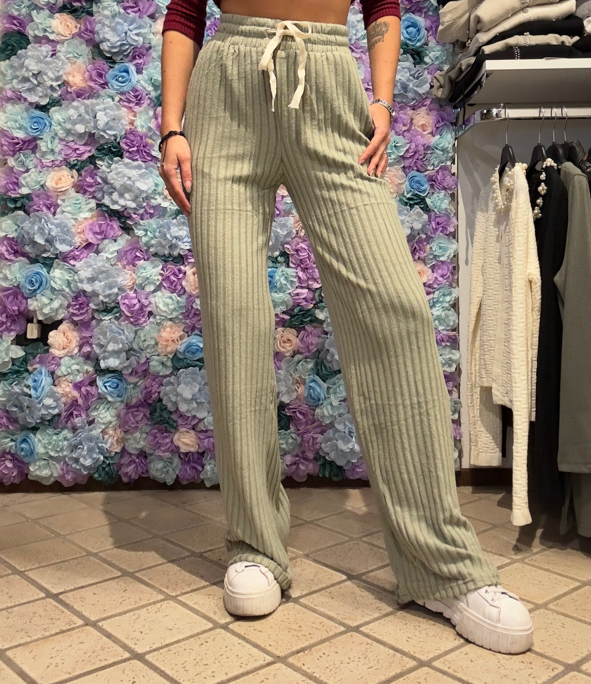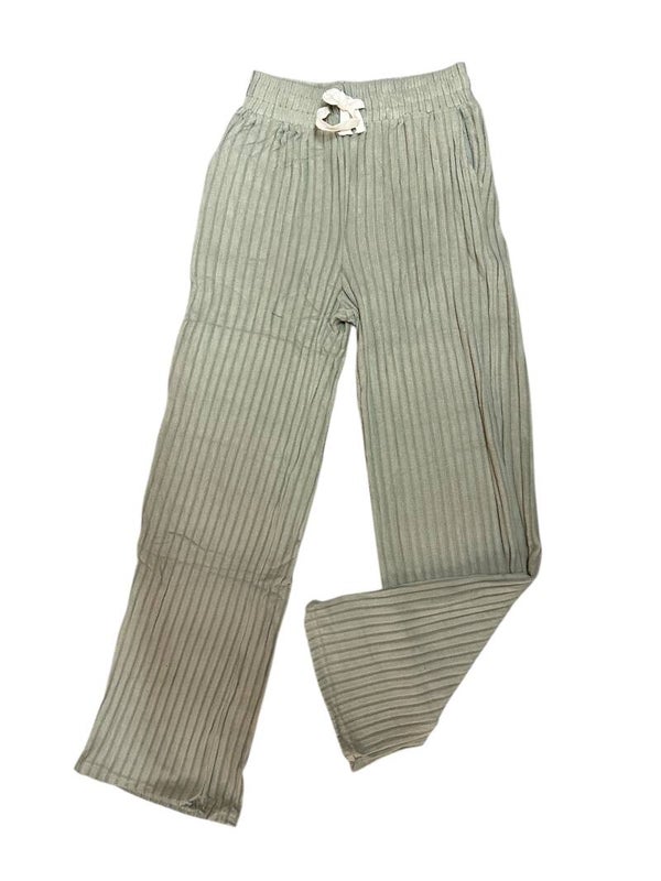 Pantalone gamba larga effetto tuta, con elastico in vita e gamba larga. Coste larghe, tessuto confortevole disponibile in S/M o L/XL diversi colori