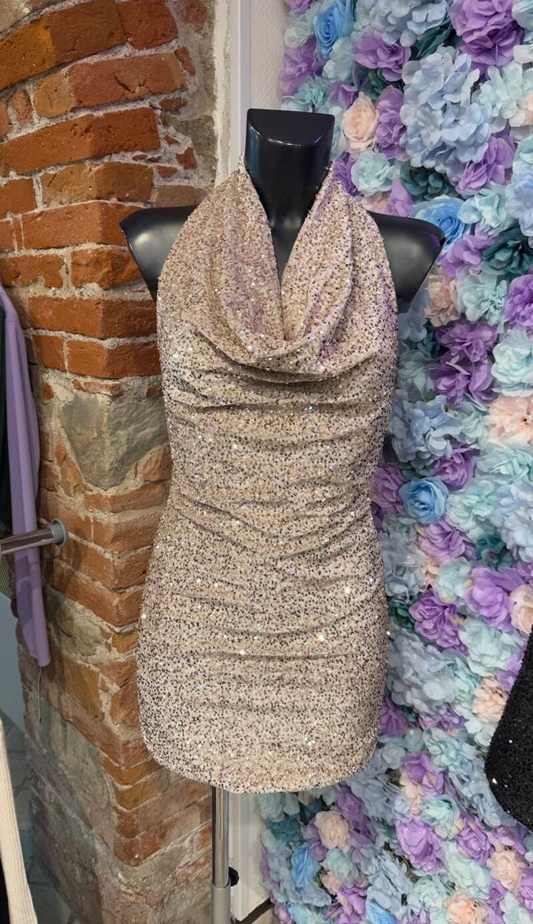 Abito caldo con payettes tono su tono, elasticizzato tg unica vestibilita slim, con scollo morbido